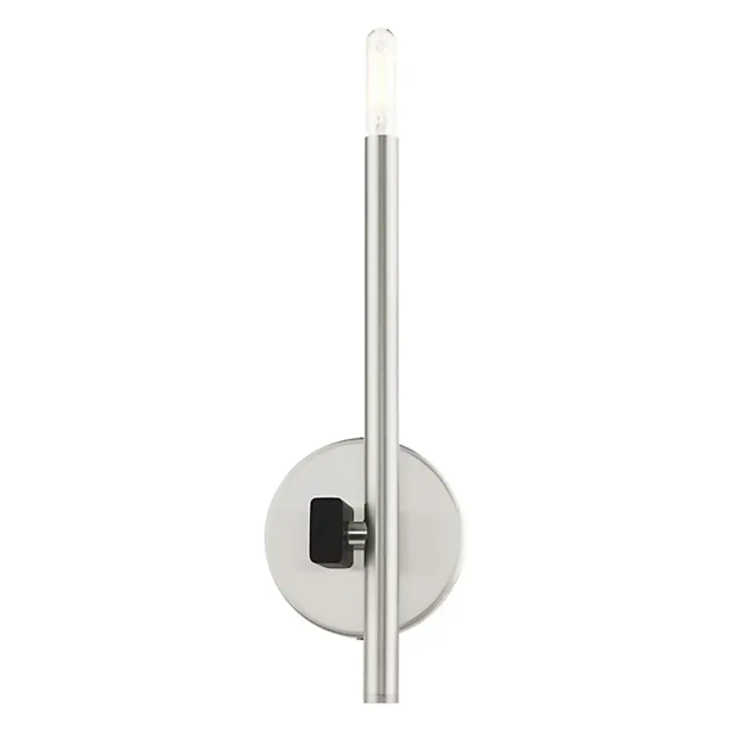 The Darcy Wall Sconce by Alder & Ore emulates early, modern Scandinavian style with a clean and contemporary composition. Anchored by a sleek, beautifully finished, metal backplate, a bold arm extends to support a slender candle stem that is offset to one side, which holds an exposed bulb at its top. Equal parts minimal and functional, this design brings a little bit of brightness and a tailored touch wherever it is placed.