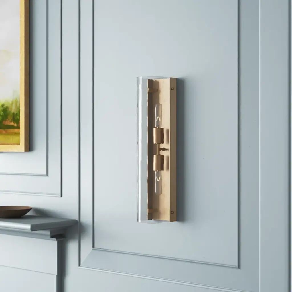 If your hallway, bath vanity or powder room could use an update, leave it to the 2-Light Flush Mount. Sleek and stylish with a clear water glass shade encasing the lamps, this 2-Light Flush Mount may be installed vertically, with a pair of lights flanking the mirror, or horizontally, with its glow washing over the mirror from above.