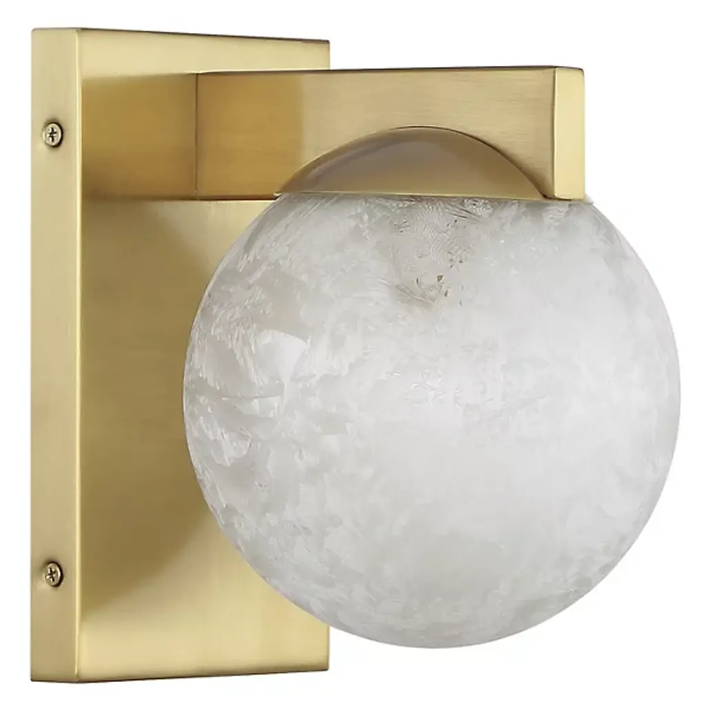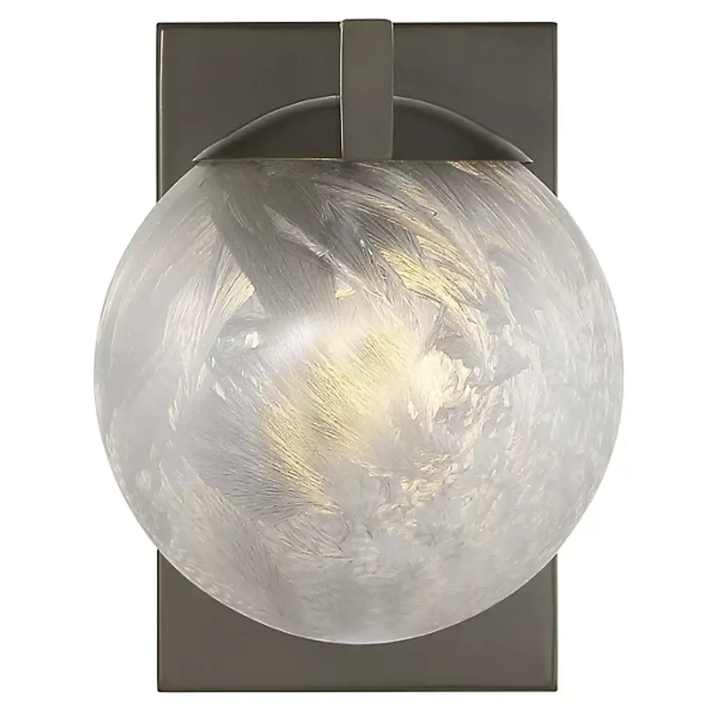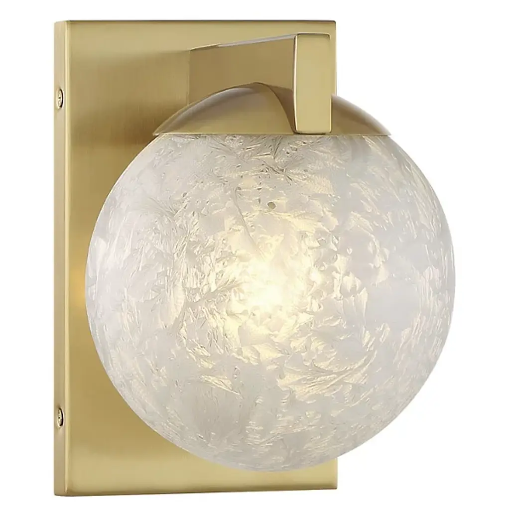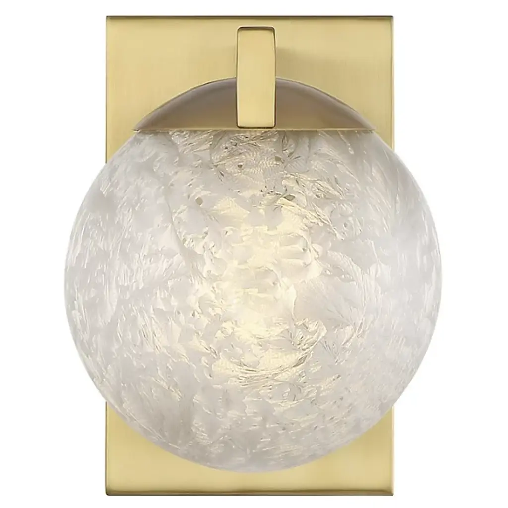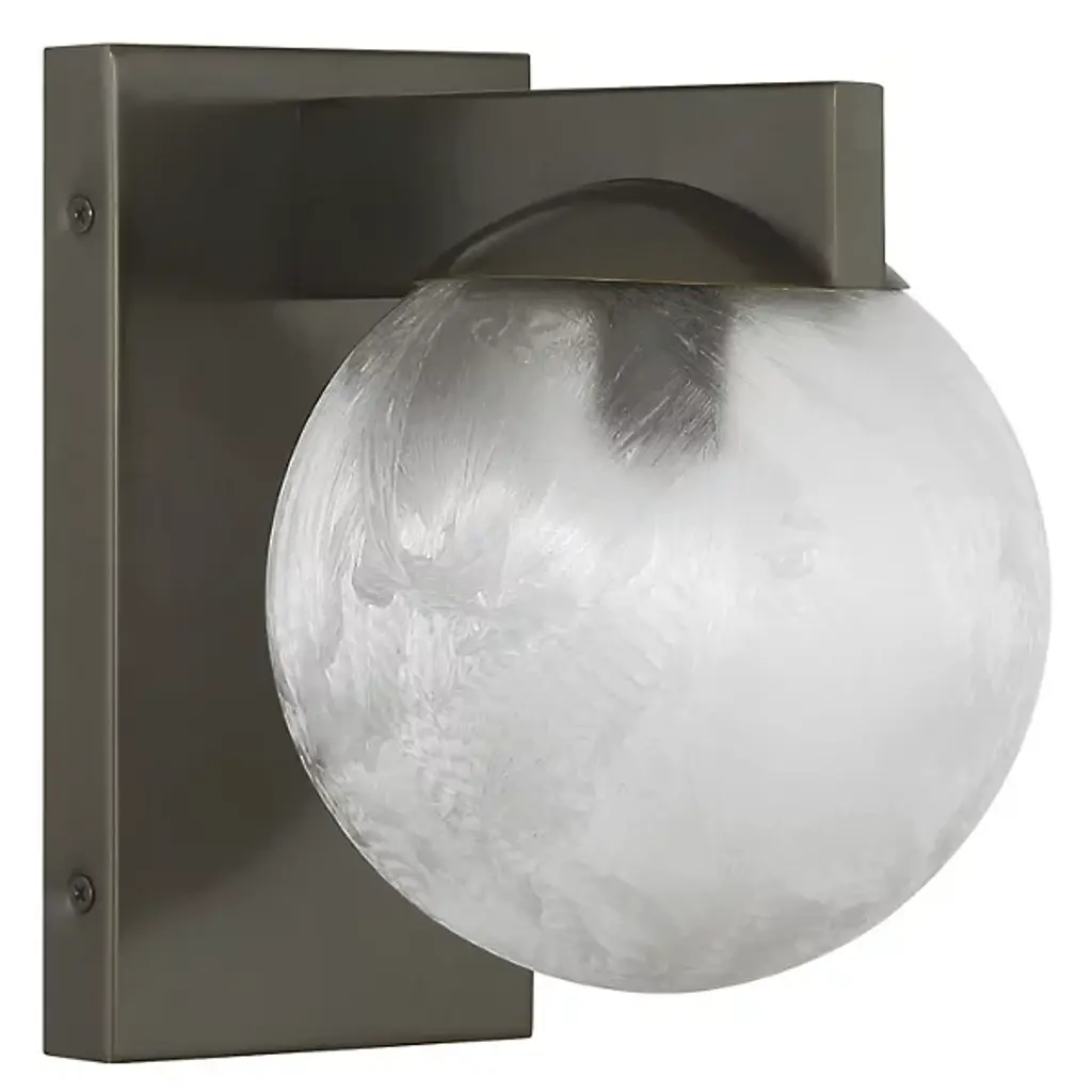 The Darien 1 Light Wall Sconce from Savoy House features a spherical glass shade that distributes light evenly. Unlike flat-backed fixtures that direct light only forward, this sconce’s orb shape creates a more natural glow throughout your space. Its compact profile extends just enough from the wall to provide functional lighting without obstructing hallway traffic. Damp-rated construction means you can install it in bathrooms or covered outdoor areas without worry. Its simple metal frame supports the shade without competing for attention, making the Darien Wall Sconce adaptable to changing interior styles over time.