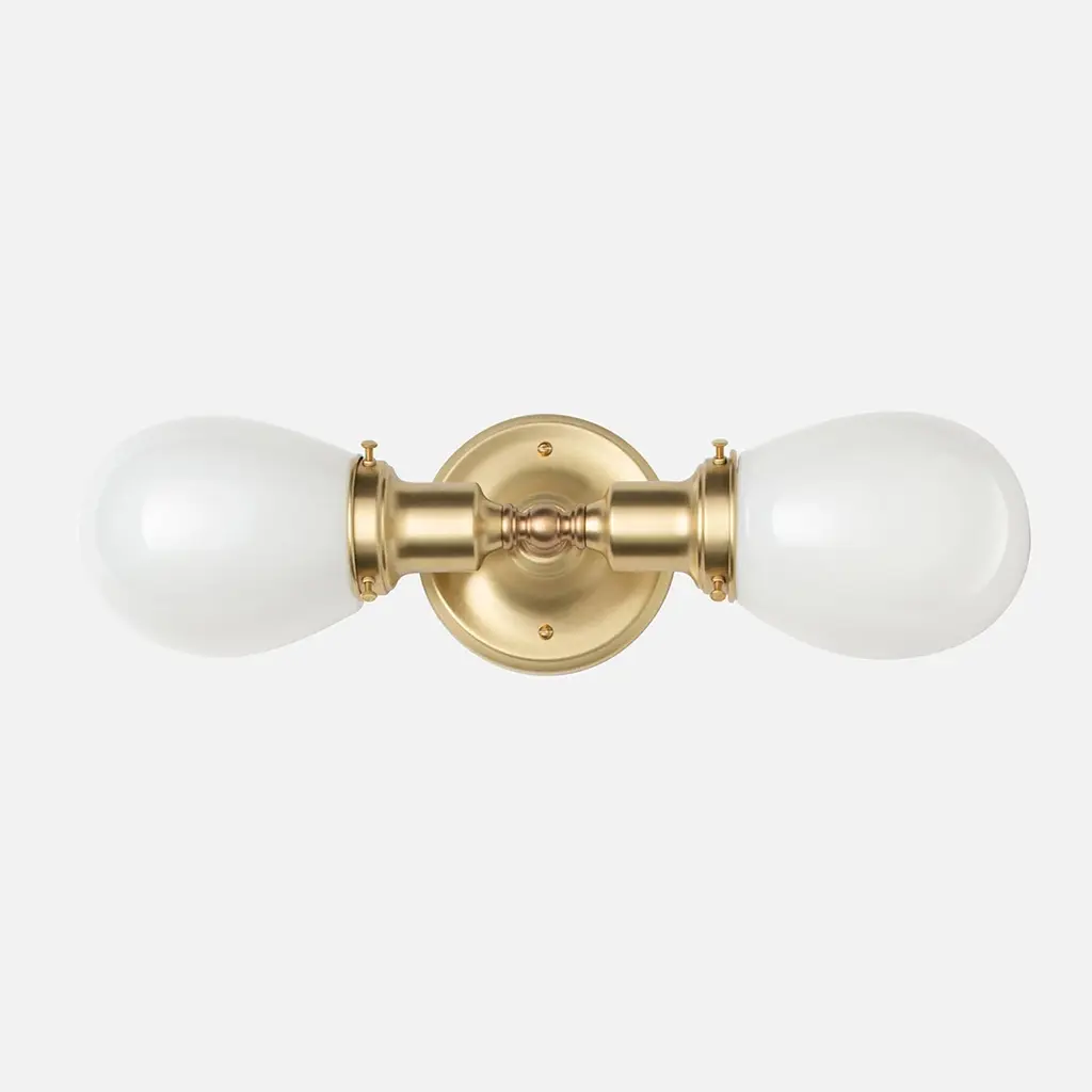 Perfectly weighted, both visually and in its construction, the Davis Double Sconce 2.25" is handcrafted to emulate the quality and durability of the classic fixtures that inspired it. Made from heavy gauge, solid American brass and finished by hand, this fixture works beautifully in bathroom and kitchen settings. Assembled in our Portland, Ore. factory using ethically-sourced domestic and global components. A Schoolhouse Original. Learn how to choose perfect wall sconce placement on our blog.