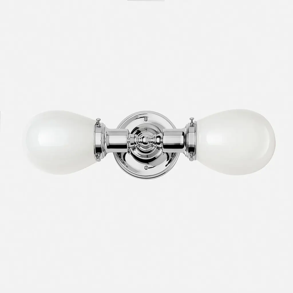 Perfectly weighted, both visually and in its construction, the Davis Double Sconce 2.25" is handcrafted to emulate the quality and durability of the classic fixtures that inspired it. Made from heavy gauge, solid American brass and finished by hand, this fixture works beautifully in bathroom and kitchen settings. Assembled in our Portland, Ore. factory using ethically-sourced domestic and global components. A Schoolhouse Original. Learn how to choose perfect wall sconce placement on our blog.