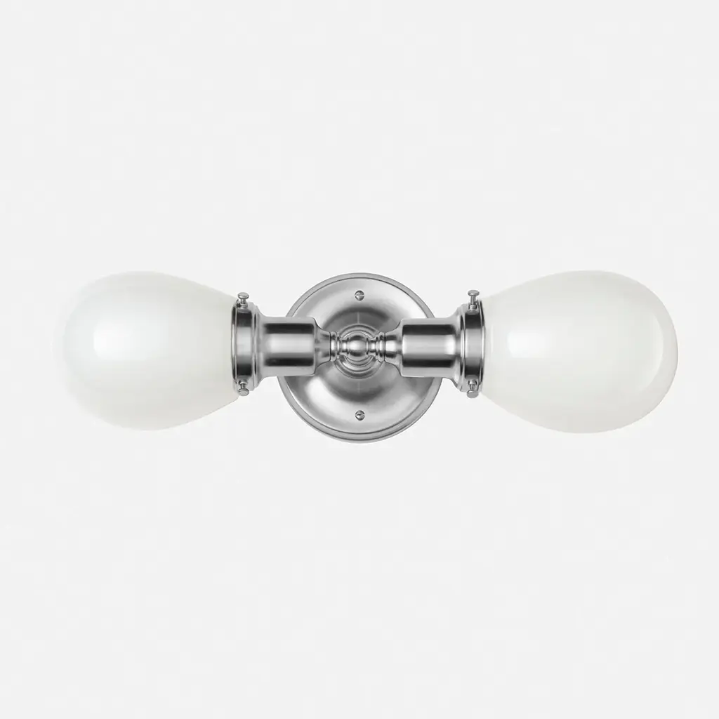 Perfectly weighted, both visually and in its construction, the Davis Double Sconce 2.25" is handcrafted to emulate the quality and durability of the classic fixtures that inspired it. Made from heavy gauge, solid American brass and finished by hand, this fixture works beautifully in bathroom and kitchen settings. Assembled in our Portland, Ore. factory using ethically-sourced domestic and global components. A Schoolhouse Original. Learn how to choose perfect wall sconce placement on our blog.