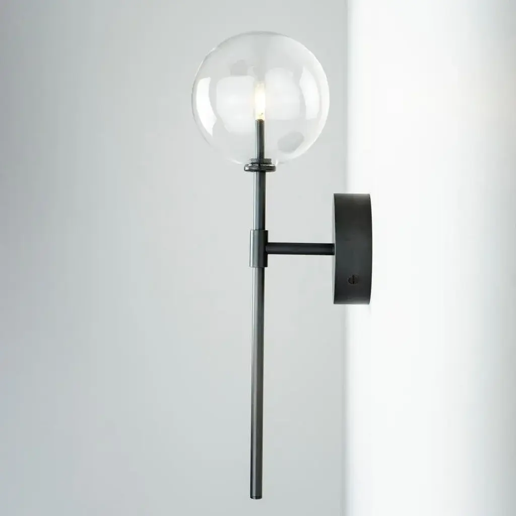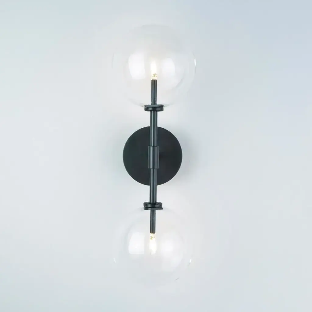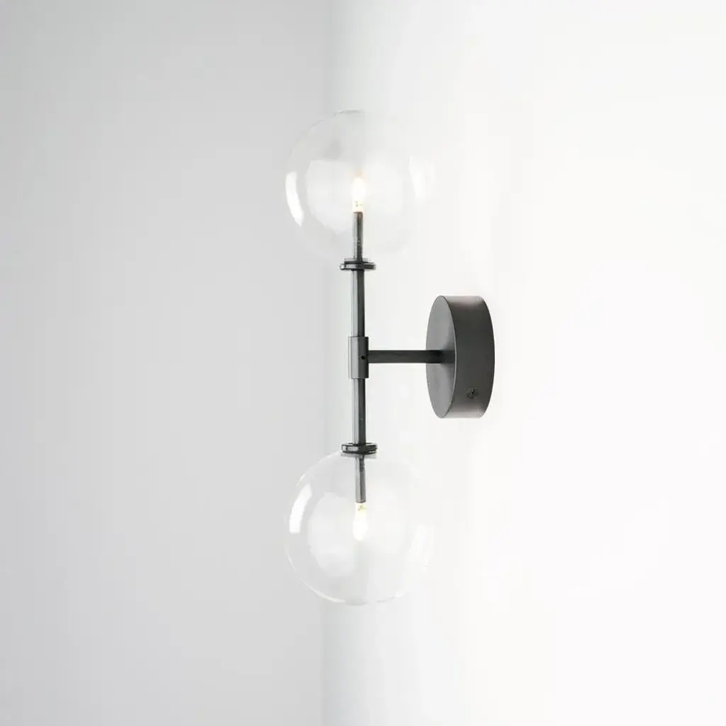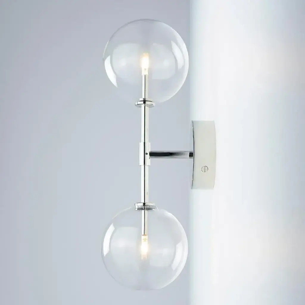 Dawn dual wall sconce by schwung dimensions: w 19 x d 15 x h 47.8 cm materials: polished nickel, hand blown glass globes finishes available: black gunmetal, polished nickel and brass up to 250v (europe/uk standard).