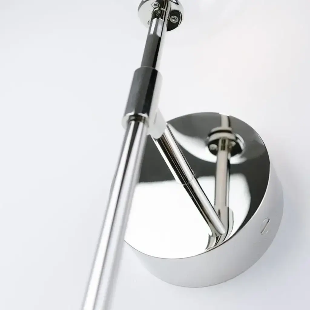Polished nickel wall sconce by schwung dimensions: d 19.3 x w 15 x h 50.5 cm materials: solid brass, hand-blown glass globes. Finish: polished nickel available in finishes: black gunmetal or natural brass. All our lamps can be wired according to each country. If sold to the usa it will be wired for the usa for instance. Made entirely of solid brass and mouth-blown glass globes. Could be dimmable. Schwung is a german word, and loosely defined, means energy or momentumm of a positive manner. Synonyms: verve, zest, panache, momentum. Mission: developing lighting fixtures through simple and timeless materials, sustainably; we are committed to creating quality products that last. Beginning with the design we are constantly refining aesthetic and function. Both in the lamps themselves and throughout the manufacturing process we pursue a holistic approach to efficiency, and the reduction of environmental impact. up to 250v (europe/uk standard).