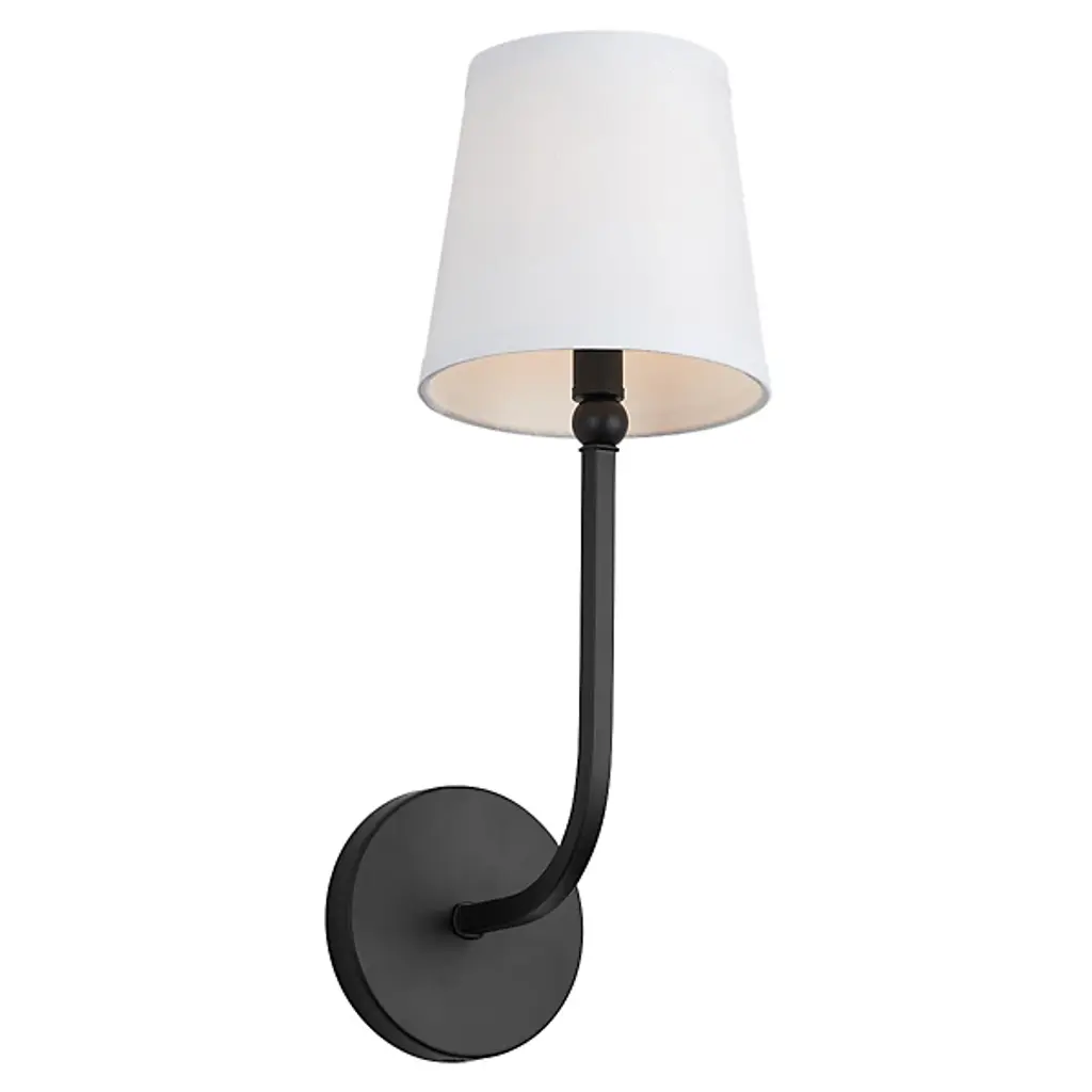 The Dawson Wall Sconce from Capital Lighting brings a timeless appeal to your home, suitable for classical home decors. Simplicity is key to appreciating the design of this piece. A single, gently curved arm extends from a minimalist backplate and ends with a small sphere accent and a white fabric shade which lowers the light into a warm, ambient glow. With a pleasing visual aesthetic, the Dawson brings the room together with its simplicity.