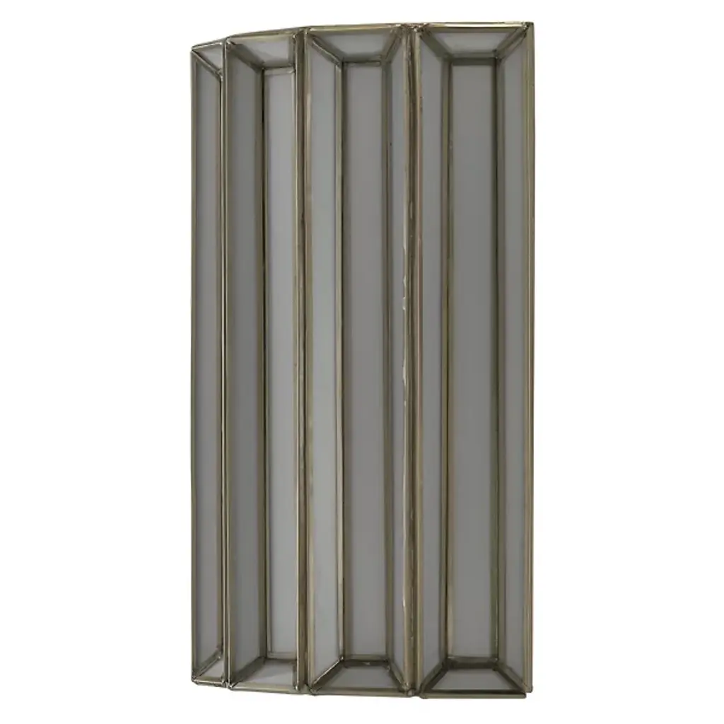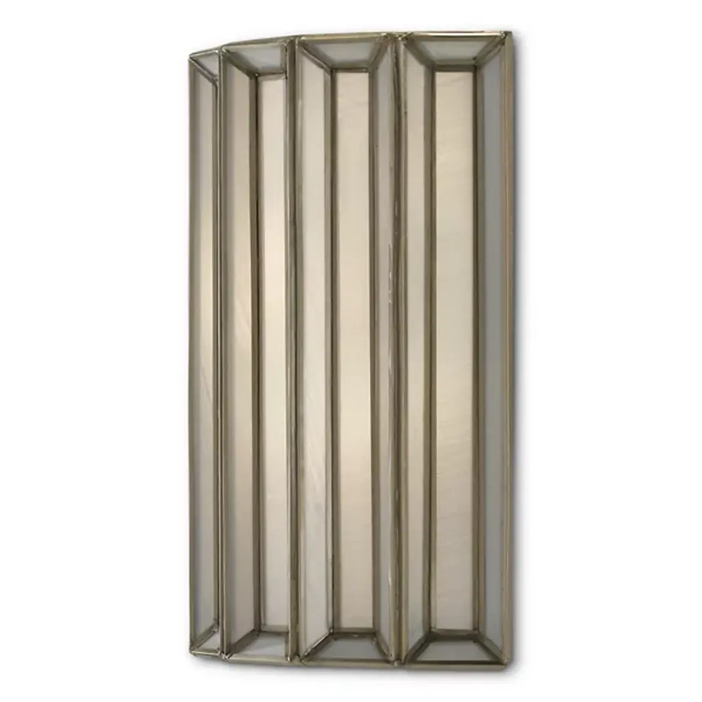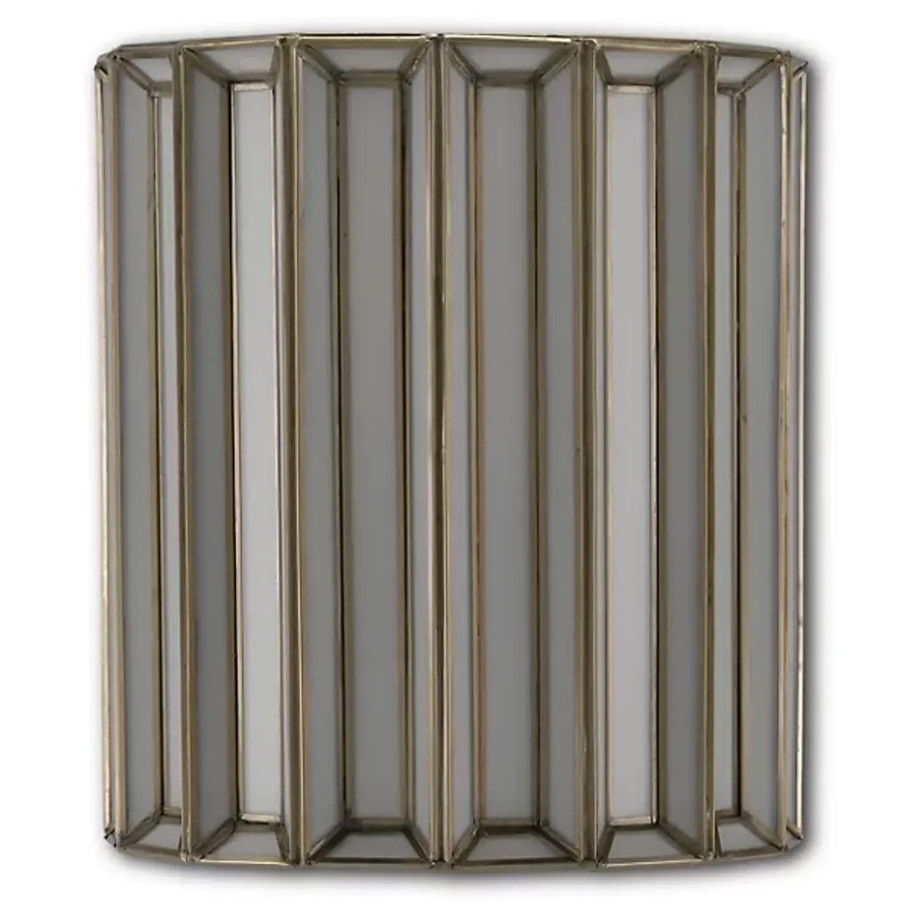 Give your decorative layout a dreamy aesthetic when you bring the Daze Wall Sconce by Currey & Company to your home. This fixture securely mounts your wall, allowing you to bring an Art Deco aesthetic to your surroundings. Metal has been worked in a geometrical fashion that emphasizes perpendicularity and sleek right angles. The metal surrounds a shade of glass, punctuating the shade with a linear style that creates a picture-frame look. Illuminate your walkway with Incandescent light and help your guests navigate with ease.