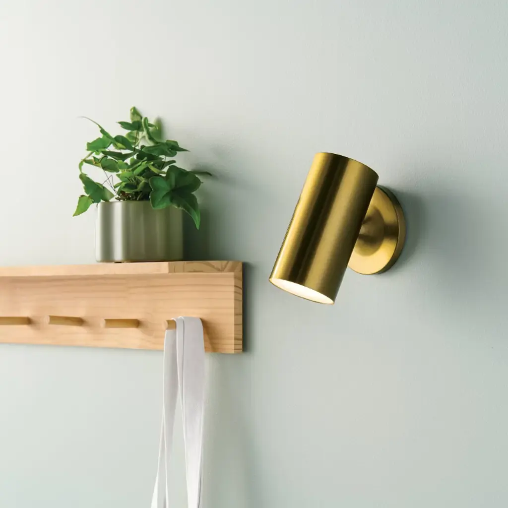 Create a warm and inviting ambiance with this Dean Wall Sconce from Room Essentials™. Made of metal, this cylindrical wall sconce features a brass finish that adds modern charm to your space. It comes with a non-removable integrated bulb with a 1-way setting that can be turned on and off by a remote control for ease of use. Install it on any wall in your living room or bedroom for a soft, warm glow. Room Essentials™: Everyday Value