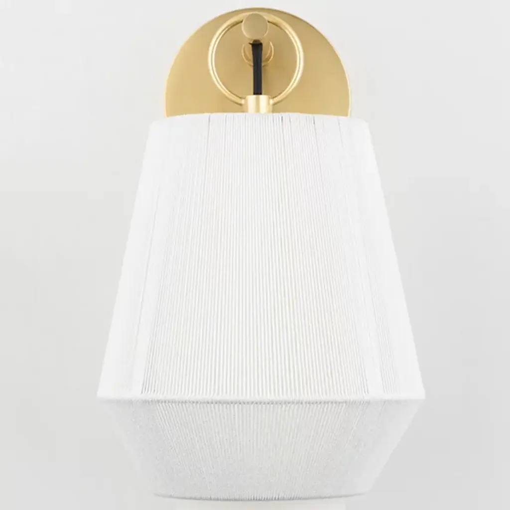 The Debi Wall Sconce by Hudson Valley Lighting stacks on the style with its double shade design. Made of Steel, the design starts with a simple round wall plate and arm. Lofted from a single ring hook, a White Belgian Linen drum shade covers a single light. A second shade with a Steel frame wrapped in White Nylon string covers the first shade for a unique silhouette and ultimate light diffusion. Combine this wall sconce with the matching Debi Pendant for a crisp, clean modern look in a foyer, dining room or living space.