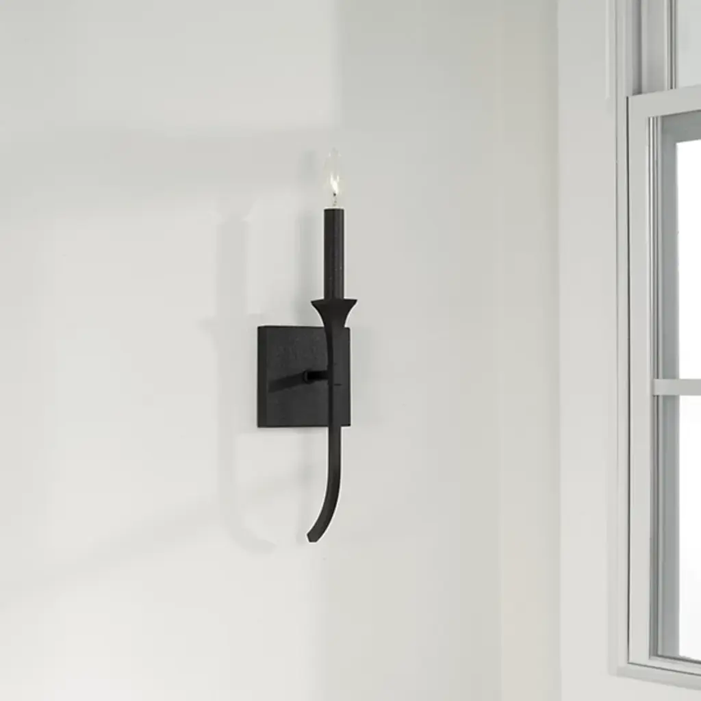 The Decklan Wall Sconce from Capital Lighting is a radiant fusion of design and timeless elegance that transforms your space. This sconce's curved, streamlined metal framework gracefully lines your wall, anchored by a geometric backplate that adds a touch of transitional flair to your setting. Experience the enchanting glow emitted by the LED housed within, casting a warm and inviting candlelight aura throughout your space. Decklan goes beyond illumination, offering a customizable touch with interchangeable candle sleeves.