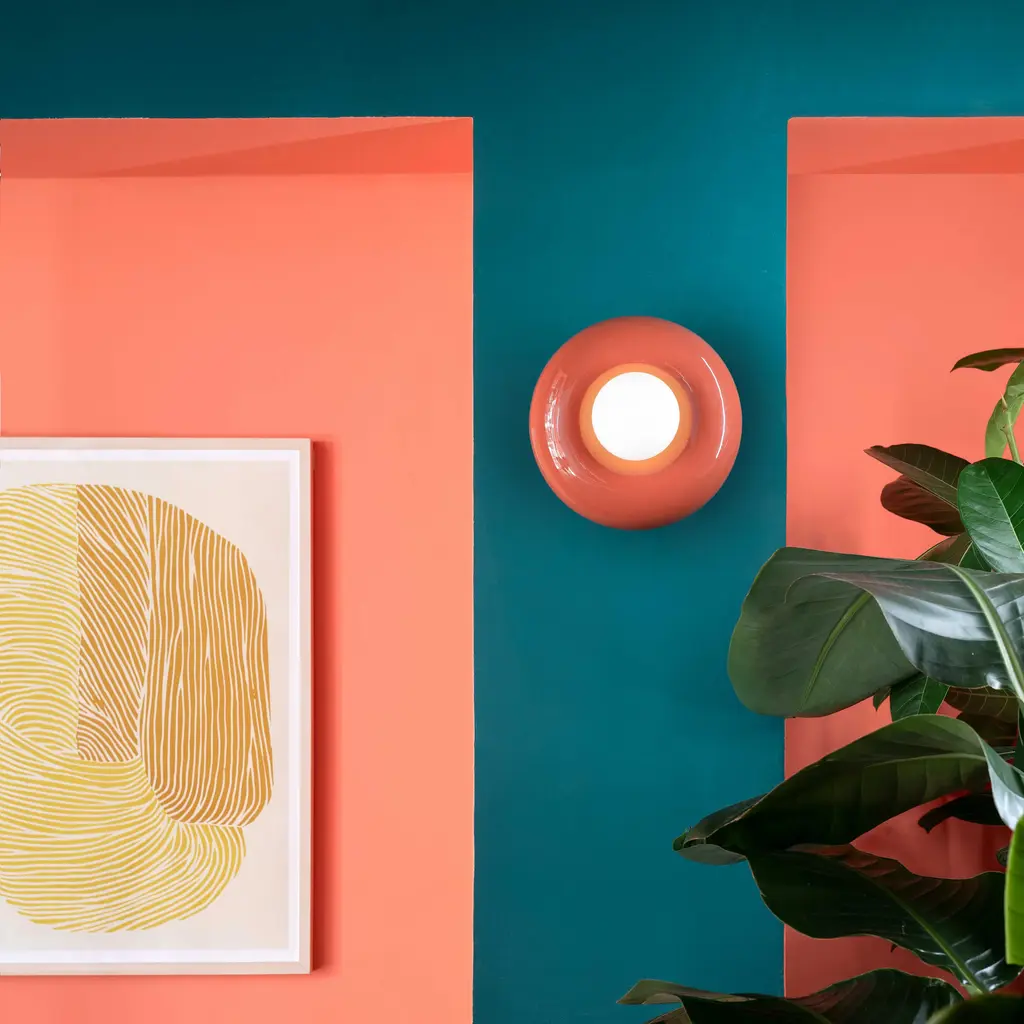 Experience the playful energy of the Deco Bumbum Wall/Ceiling Light from Ferroluce. Crafted with glossy ceramic in a donut-shaped frame, this stylish sconce brings a vibrant touch to any space, highlighted by its sinuous curves and a glass globe diffuser. Crafted by artisans, this unique wall sconce offers a burst of energy that elevates any decor. Highlights