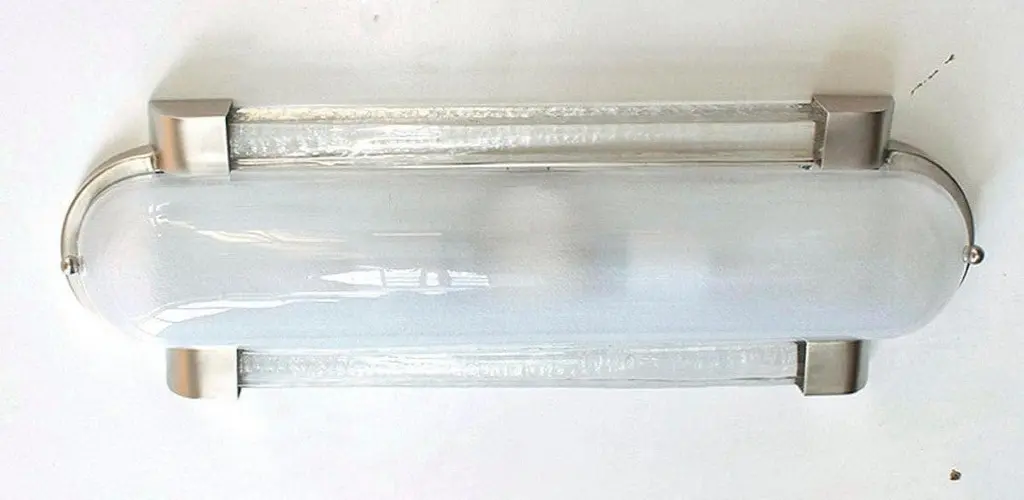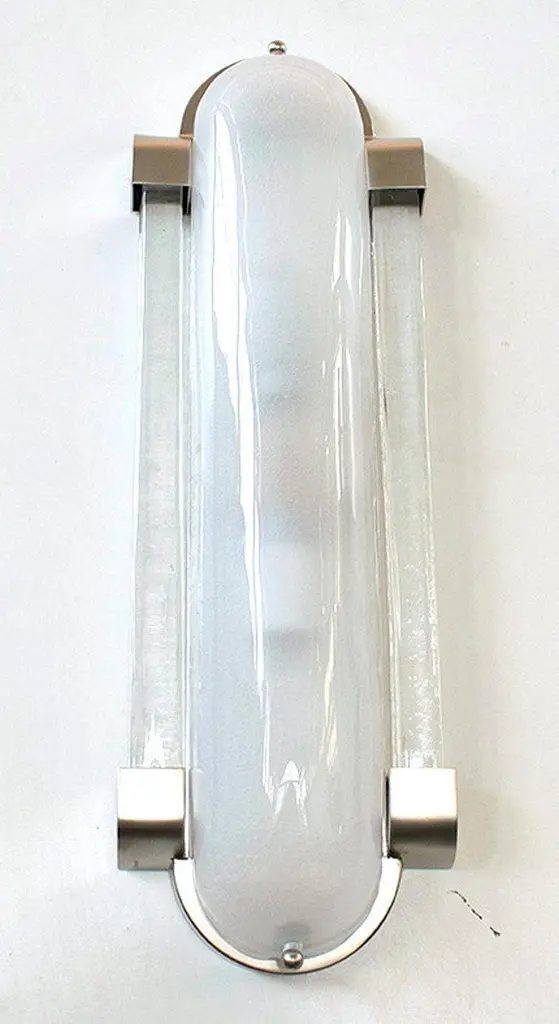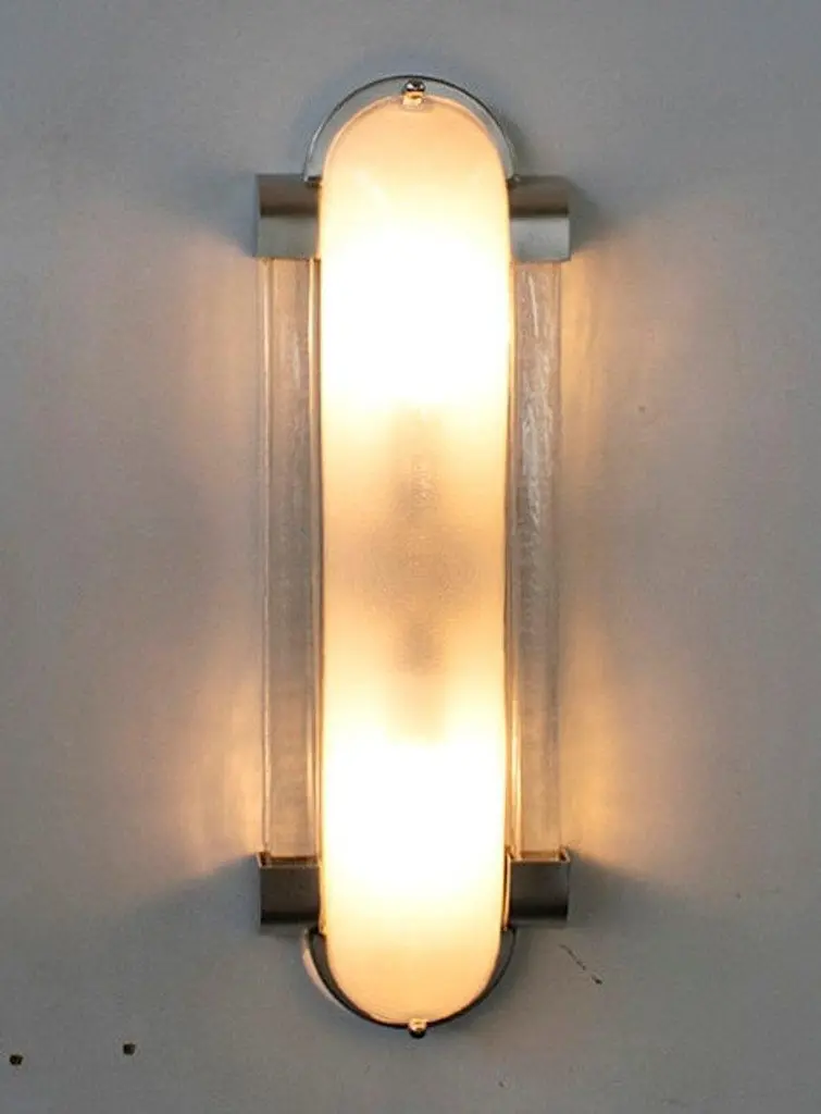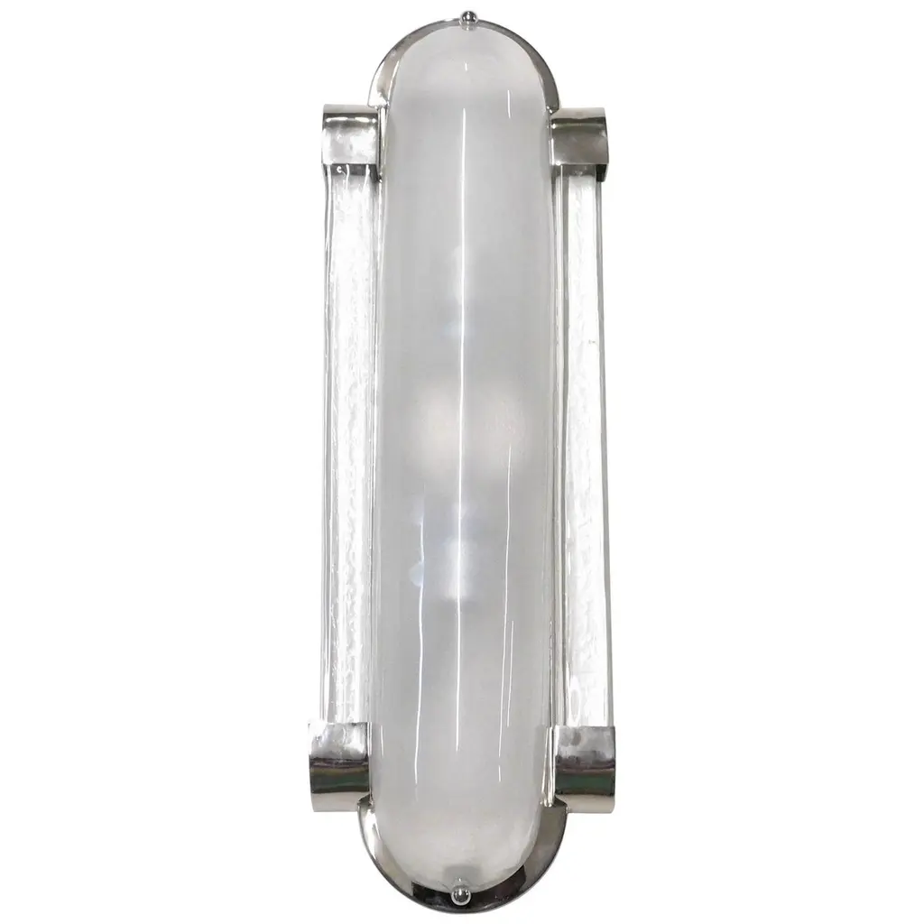 Italian Art Deco style wall light or flush mount with frosted Murano glass mounted on satin nickel frame / designed by Fabio Bergomi for Fabio Ltd, made in Italy2-light / E12 or E14 / max 40W eachMeasures: Height 18.5 inches, width 6.5 inches, depth 3 inchesOrder Only / This item ships from ItalyPlease inquire for custom options / pricing / current lead timesOrder Reference #: FABIOLTD W544