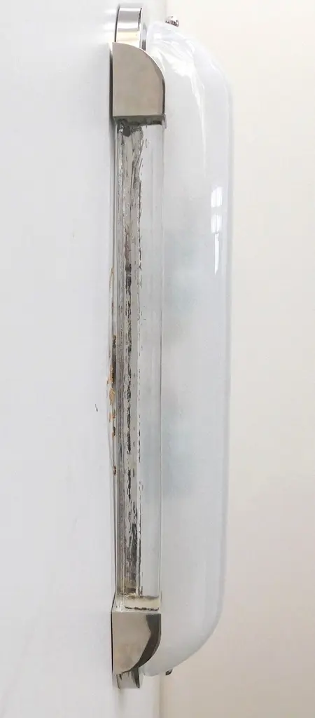 Italian Art Deco style wall light or flushmount with frosted Murano glass mounted on polished nickel frame / Designed by Fabio Bergomi for Fabio Ltd / Made in Italy2-light / E12 or E14 max 40W each.Measures: Height 18.5 inches, width 6.5 inches, depth 3 inchesOrder Only / This item ships from ItalyPlease inquire for custom options / pricing / current lead timesOrder Reference #: FABIOLTD W548