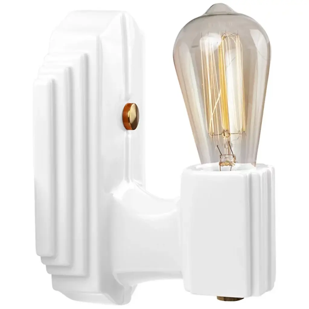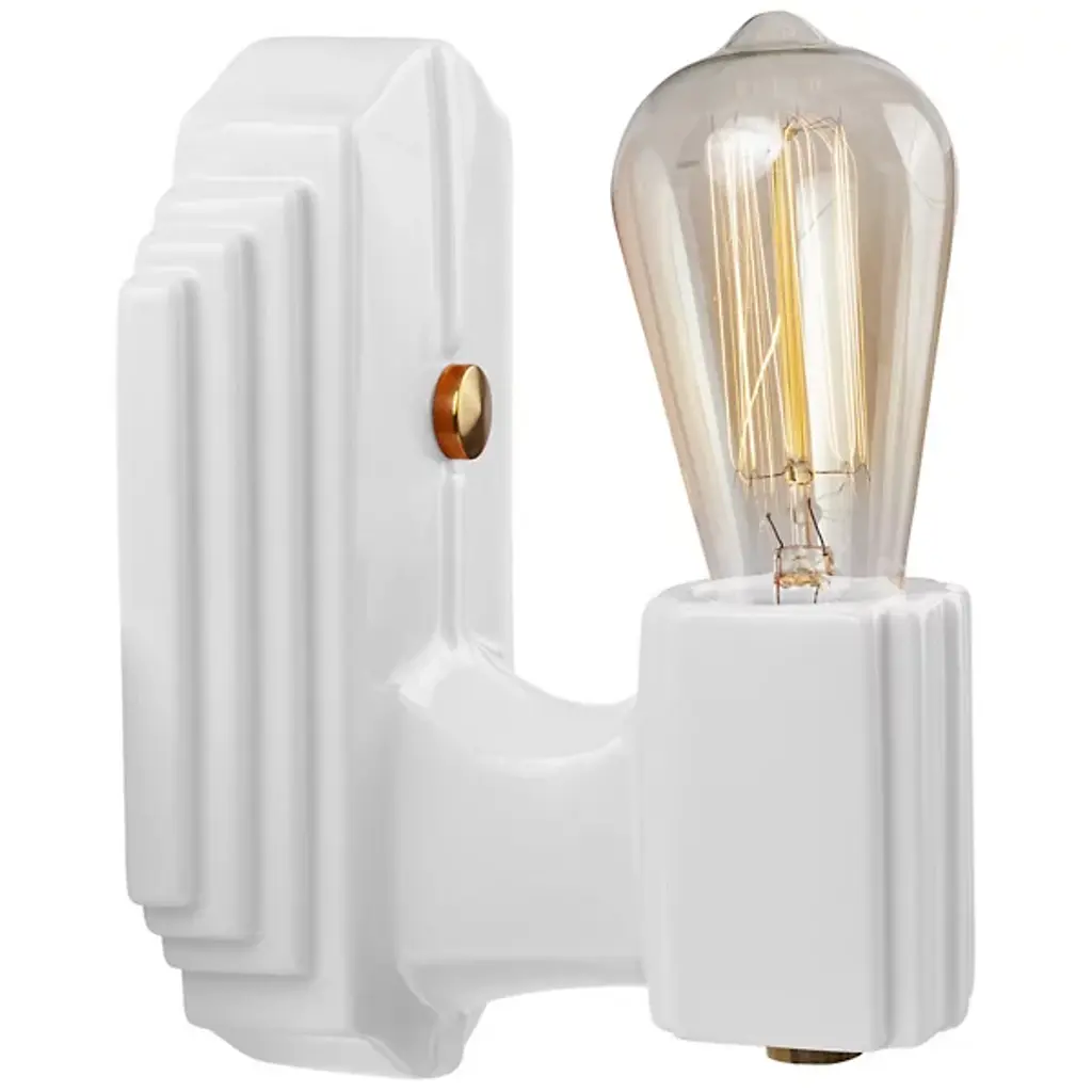 A dose of Art Deco design for modern interiors. With its geometric, stepped form, the Deco Rectangle Wall Sconce by Justice Design Group is a fun way to bring the 1930s into the 2020s. It is made entirely of Ceramic, with the chosen bulb left exposed to shine unimpeded. Use this wall sconce to add a touch of glamour and plenty of ambient light to a bathroom, bedroom or other room. Includes an optional pull chain switch.