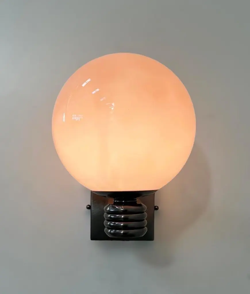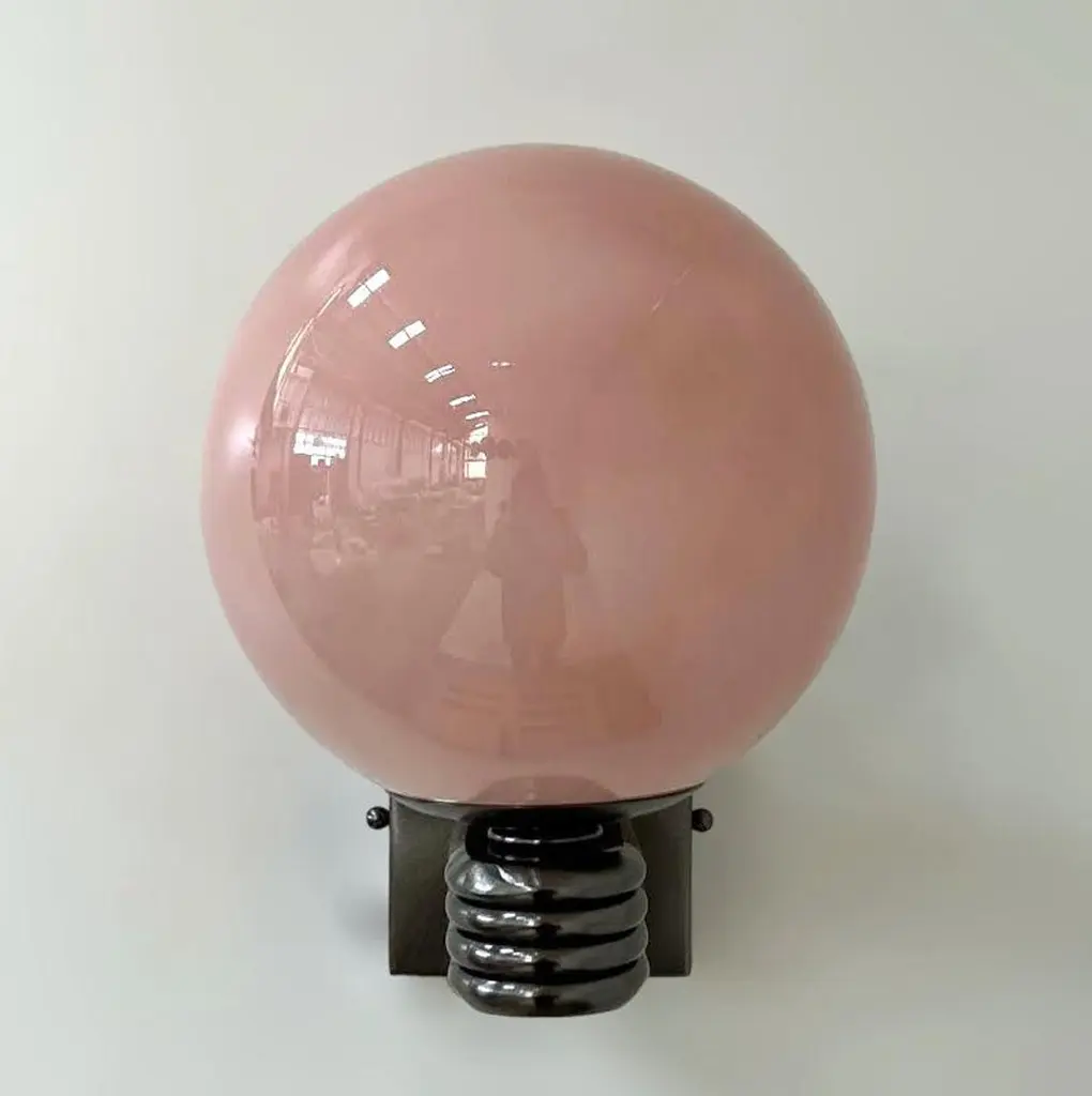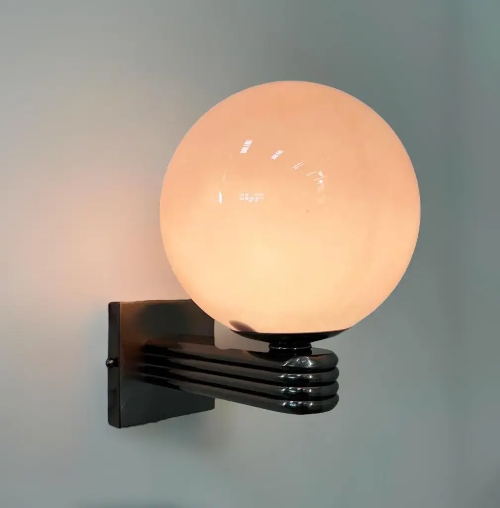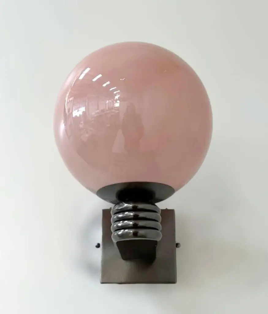 Italian Art Deco style wall light with opaque pink coral Murano glass globe mounted on satin black nickel finish frame, designed by Fabio Bergomi for Fabio Ltd, made in Italy1 light / E12 or E14 type / max 40WMeasures: Height 12 inches, width 8 inches, depth 10 inchesOrder only / This item ships from ItalyPlease inquire for custom options / pricing / current lead timesOrder Reference #: FABIOLTD W757 OPAQUE CORAL
