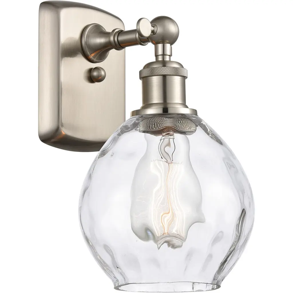 INNOVATIONS 516-1W-WPC-G1213-6SM Deco Swirl 1 Light 6 inch Sconce White and Polished Chrome. Style: Industrial, Modern Contempo, Restoration-Vintage, Transitional . Collection Name: Ballston. Metal Finish(Body): White and Polished Chrome. Metal Finish(Canopy/Backplate): White. Material: Steel, Cast Brass, Glass. Dimension(in): 9.125(H) x 5.875(W) x 7.0625(Ext). Bulb: (1)60W Medium Base Incandescent(Not Included). Voltage: 120. Dimmable: Yes. Color Temperature (Kelvin): 2200. Color Rendering Index (CRI): 99.9. Lumens: 220. Life Expectancy (Hours): 2000. Glass Shade Description: Light Smoke Athens Deco Swirl 8". Glass Type: Smoked. Shade Shape: Globe/Orb. Glass or Metal Shade Color: Light Smoke Deco Swirl. Shade Material: Glass. Shade Dimension(in): 5.875(W) x 5.125(H). Fitter Measurement (Glass Or Metal Shade Fitter Size): Neckless with a 1.675 inch opening. Backplate Dimension(in): 6(H) x 4.5(W) x 0.75(Depth). ADA Compliant: No. California Proposition 65 Warning Required: Yes. UL/ETL Certification Type: Damp Location.