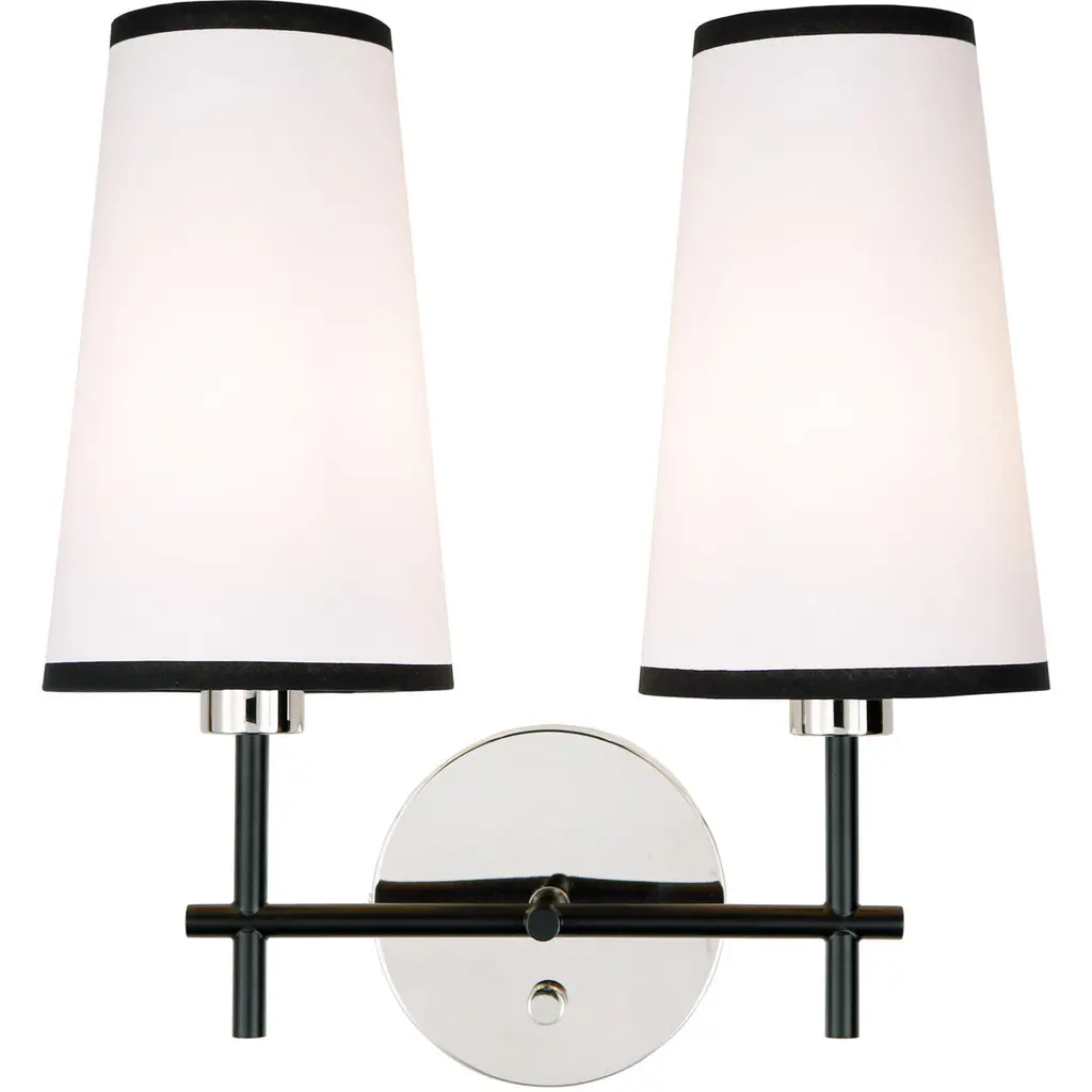 The elegant black-and-white chromatic contrast characterizes the design of an elegant wall lamp with an oval lampshade in plissé fabric and a turned brass arm.