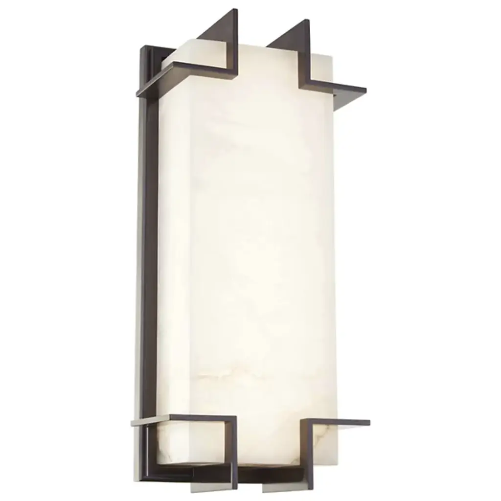 A celebration of the Art Deco era, the Delmar LED Wall Sconce by Hudson Valley Lighting makes a statement in a foyer, hallway, living room or bedroom setting. Featuring a rectangular Alabaster shade set into a Brass wall frame, the design showcases symmetrical corner frame accents. Inside the sconce an LED lamp brings warm diffused illumination to contemporary spaces. Suitable for damp locations.
