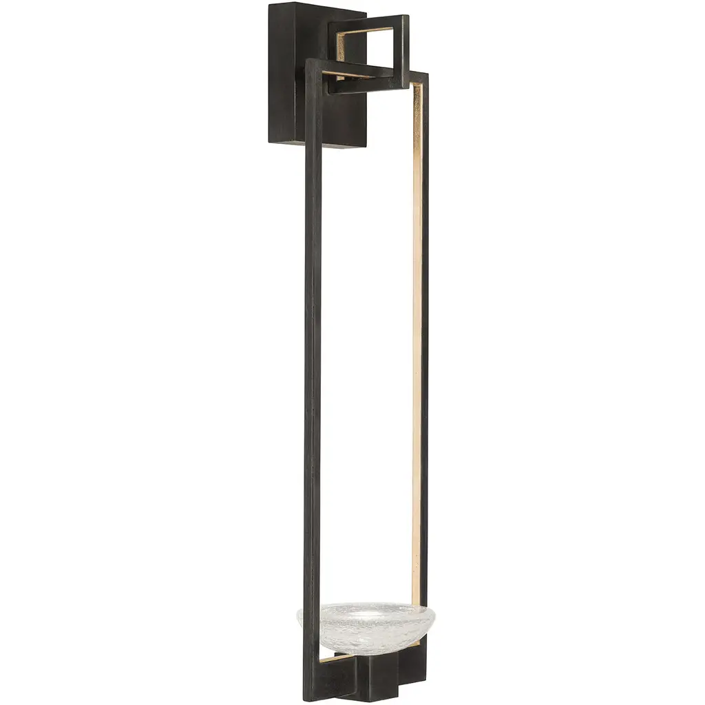 Inspired by the myths and legends of the ancient Oracle of Delphi, this sconce features hand formed glass and is set within a silhouette whose form above all emphasizes purity. Available in silver leaf, gold leaf and hand rubbed black iron with gold leaf