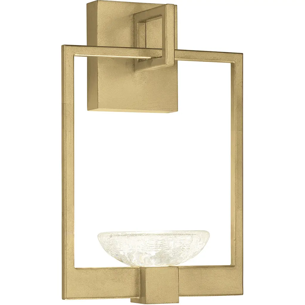 Inspired by the myths and legends of the ancient Oracle of Delphi, this sconce features hand formed glass and is set within a silhouette whose form above all emphasizes purity. Available in silver leaf, gold leaf and hand rubbed black iron with gold leaf
