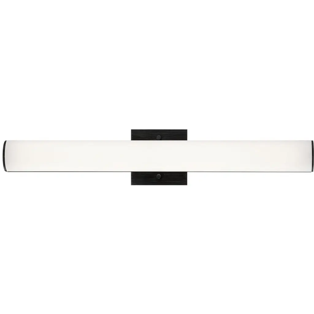Classic, traditional details get a modern upgrade in this bath bar. It's made from metal and mounted on a round, irregular backplate. The frame has a shiny finish that's warm and approachable, while the clean lines offer an additional element of versatility. This fixture has a single satin white cylindrical shade that provides soft, diffused light from a built-in LED light. This hardwired fixture is safe to use in damp locations like covered porches or steamy bathrooms. Plus, it's compatible with dimmer switches, so it's easy to get the right look for every occasion.