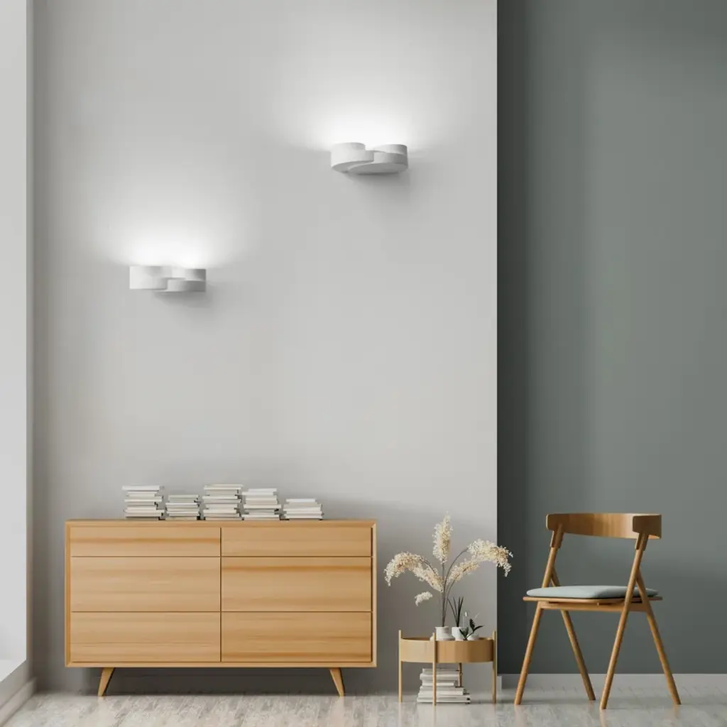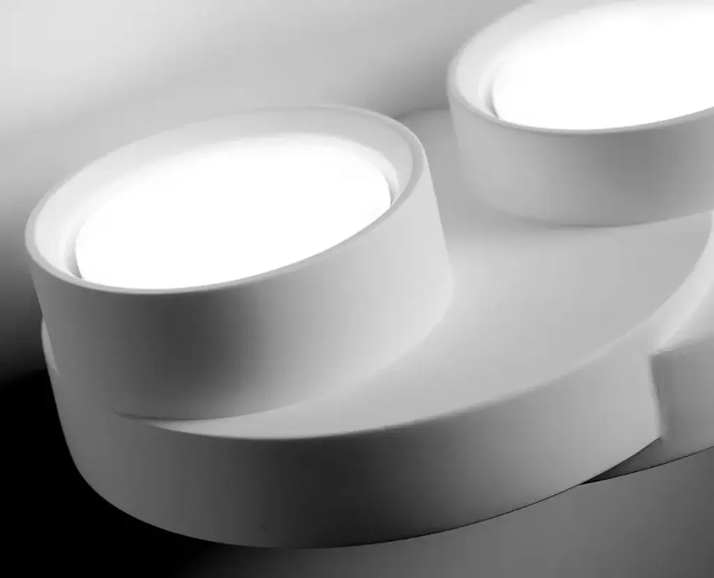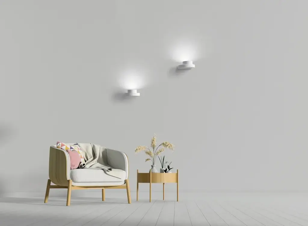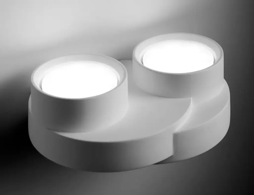 Demetra is a plaster wall one-light lamp. Designed for GX53 bulbs. Bulbs: fluorescent or LED.cod. T360: GX53 - 1x10Wcod. T361: GX53 - 2x10W