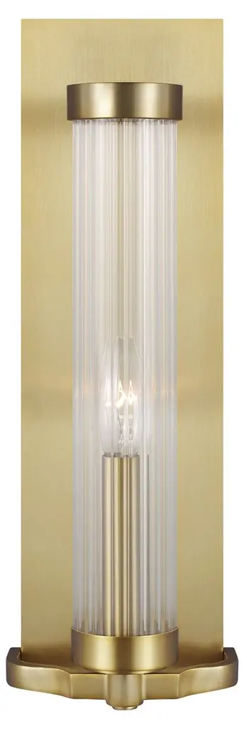 Designed with a ribbed glass shade and burnished brass finish, this sconce boasts a classic look that works well in any decor. Hardwired.