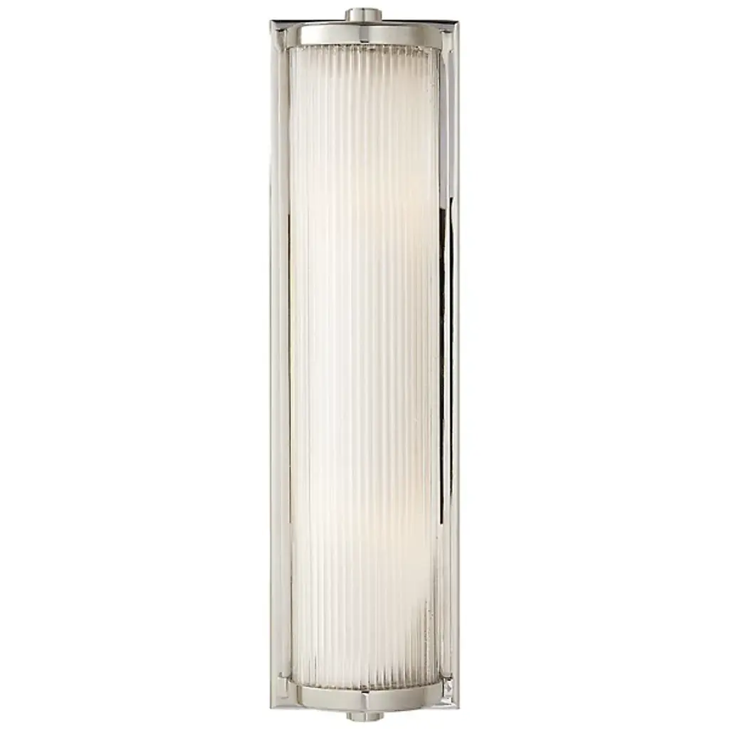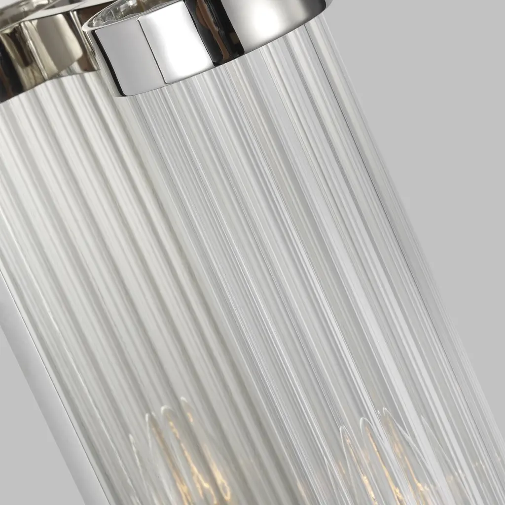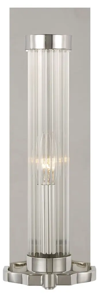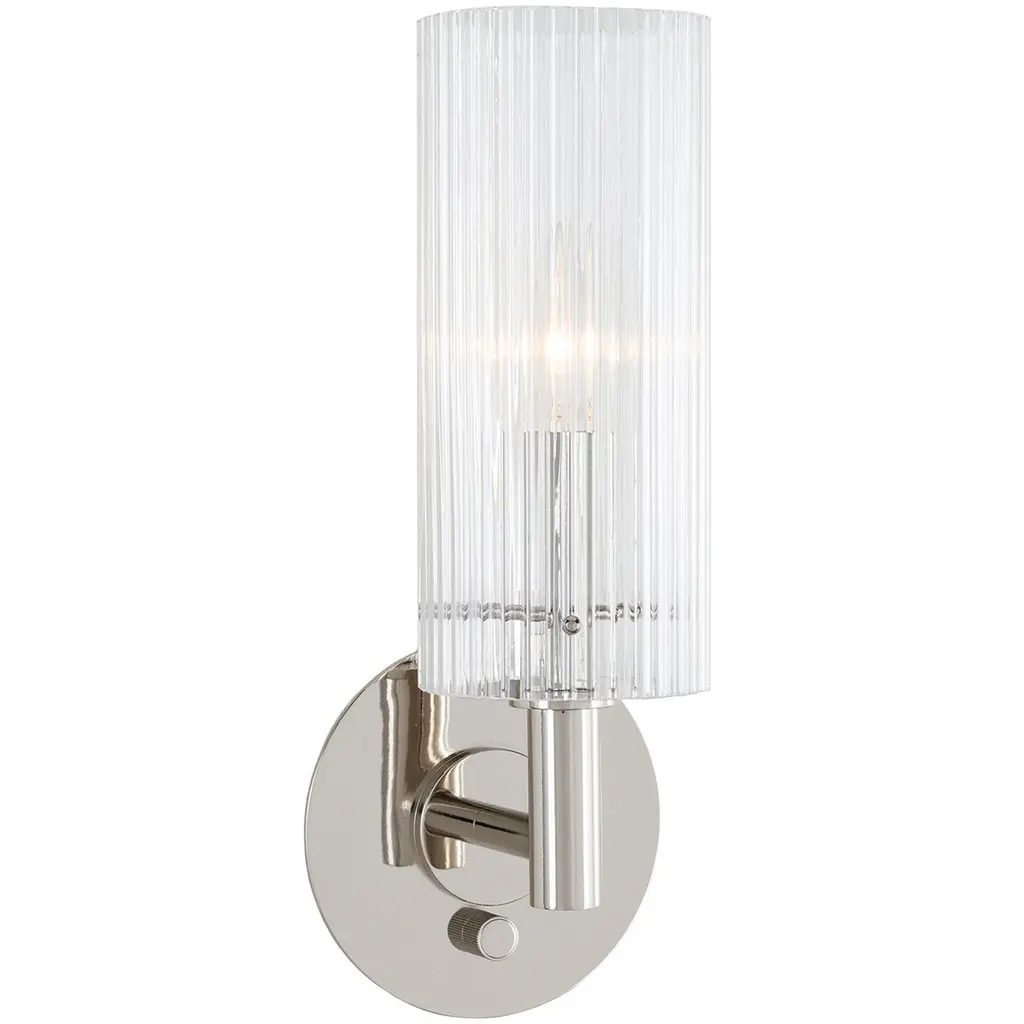 Designed with a ribbed glass shade and polished nickel finish, this sconce boasts a classic look that works well in any decor. Hardwired.