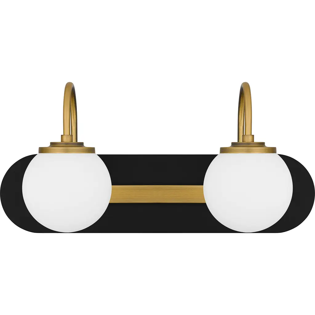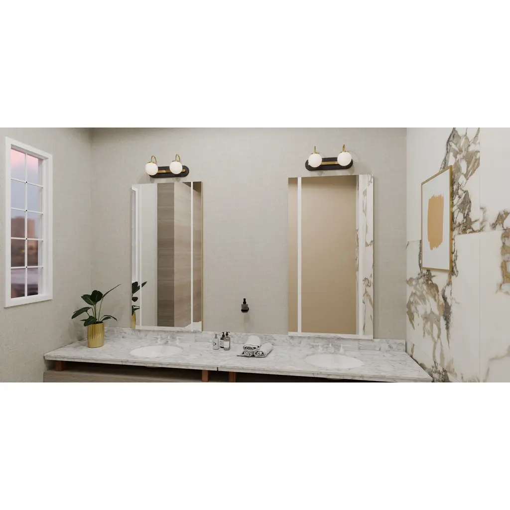 Matte black and brushed gold accents make a beautiful, modern pairing in Desmond. Opal etched glass globes complement the bold bath light design, delivering the perfect amount of illumination. Desmond is available in a variety of sizes, allowing you to easily customize to your desired vanity setting.