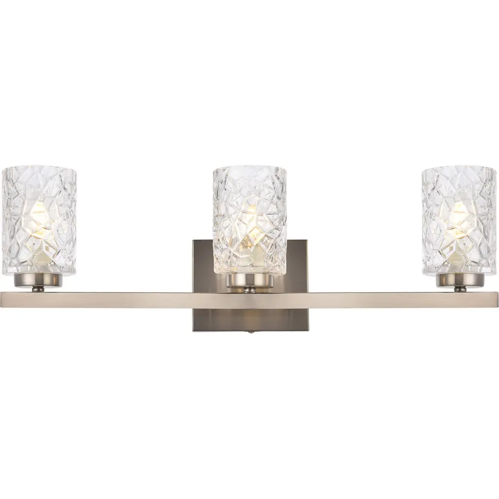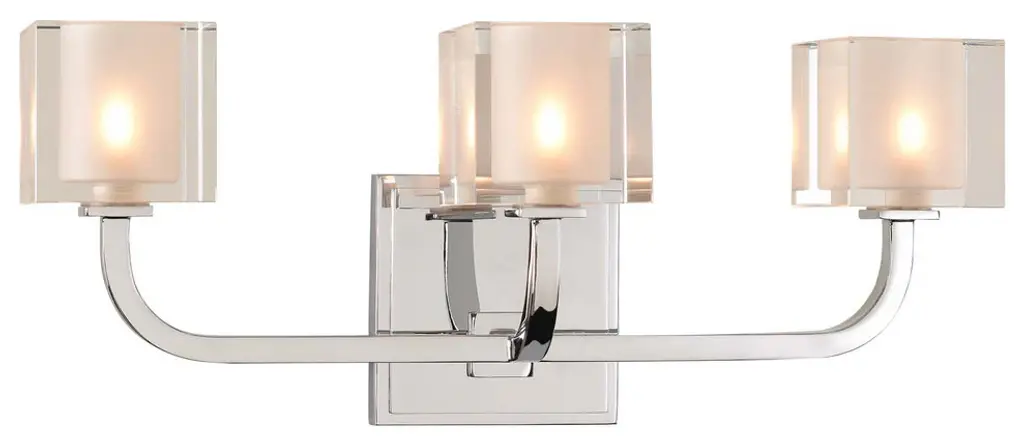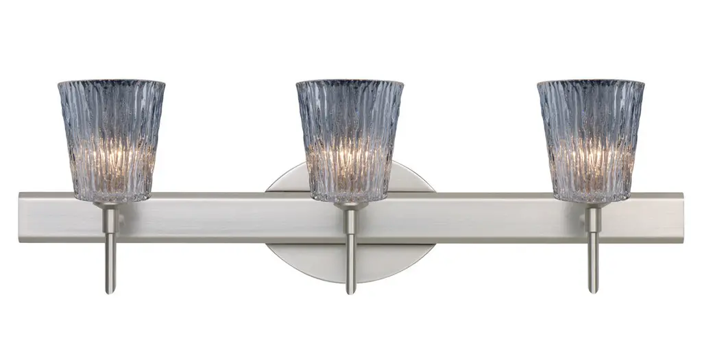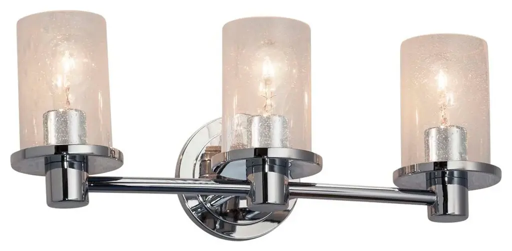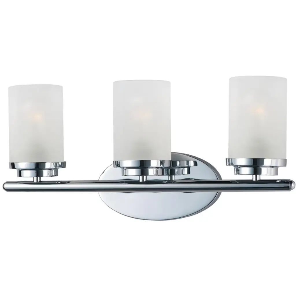 Destin 3 Light Bath Style: Modern Rated: Dry Power: Hardwire Lamping: 3 light(s). 3W LEDBulb(s) included. Finish: Chrome Upscale Traditional is the look of the Destin Collection. Featuring beautiful steps in the bar arm and backplate along with a frosted water glass cylinder with the finished edge detail this series is available in Polished Chrome or Brushed Bronze.