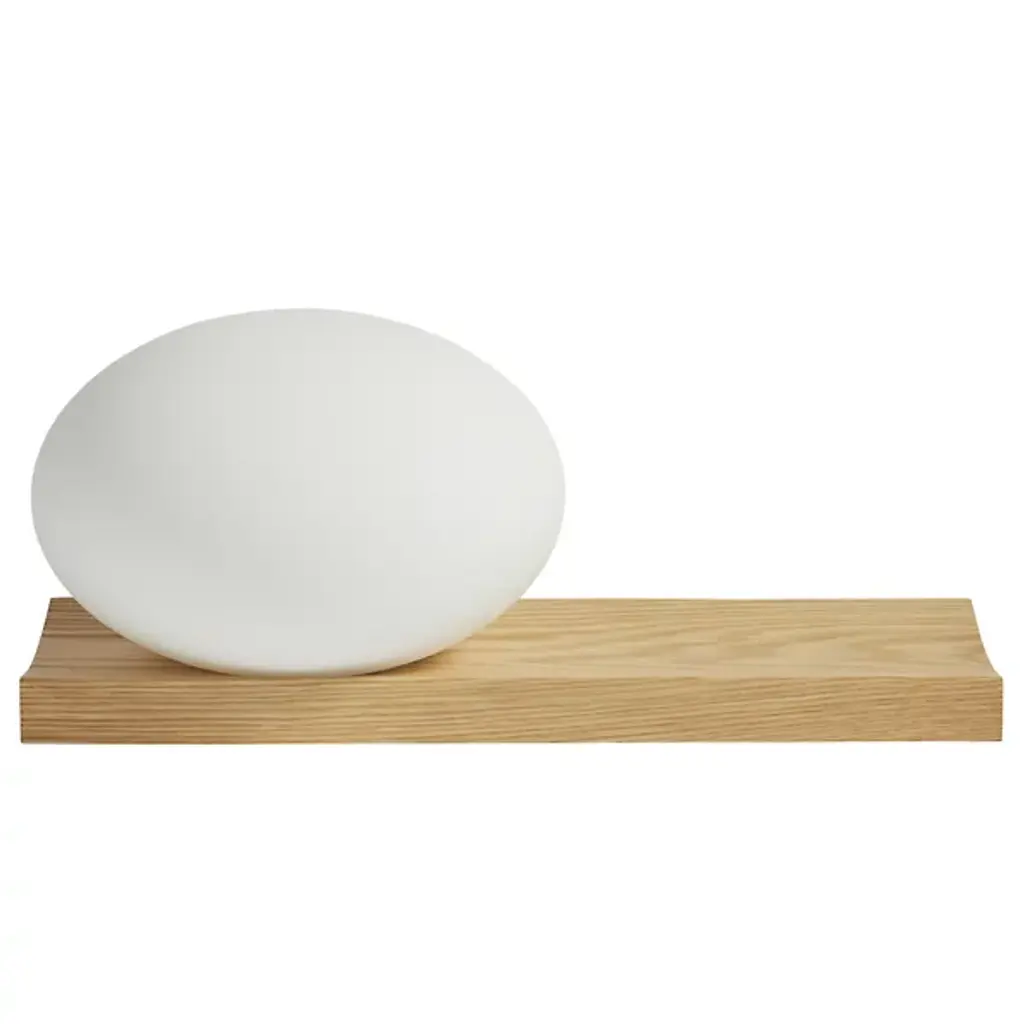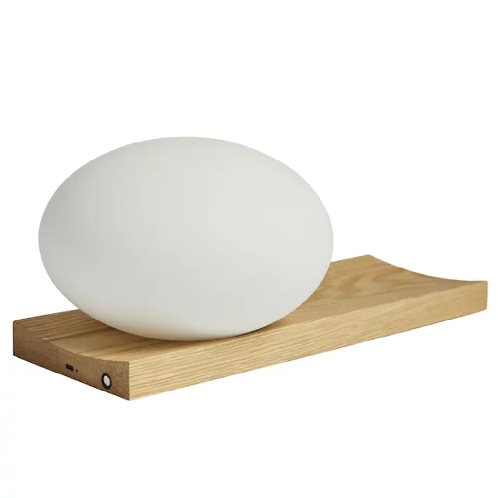 Versatile in function with impeccable form, the Dew Rechargeable LED Table Lamp / Wall Sconce is a design by Indian creative and architect Saif Faisal for Woud. With a deep insight and appreciation for cultural anthropology, sociology, and technology, Faisal’s creative criterium can be seen in the Dew, with versatile placement options, an eco-friendly integrated LED, and elevated styling in the contrast of oak wood with white opal glass shading. Place on the wall or table as desired to brighten and inspire.