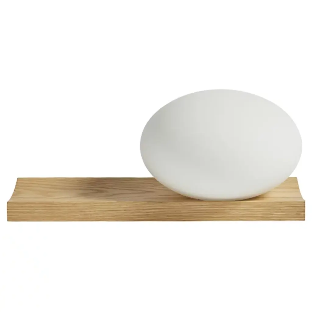 Versatile in function with impeccable form, the Dew Rechargeable LED Table Lamp / Wall Sconce is a design by Indian creative and architect Saif Faisal for Woud. With a deep insight and appreciation for cultural anthropology, sociology, and technology, Faisal’s creative criterium can be seen in the Dew, with versatile placement options, an eco-friendly integrated LED, and elevated styling in the contrast of oak wood with white opal glass shading. Place on the wall or table as desired to brighten and inspire.