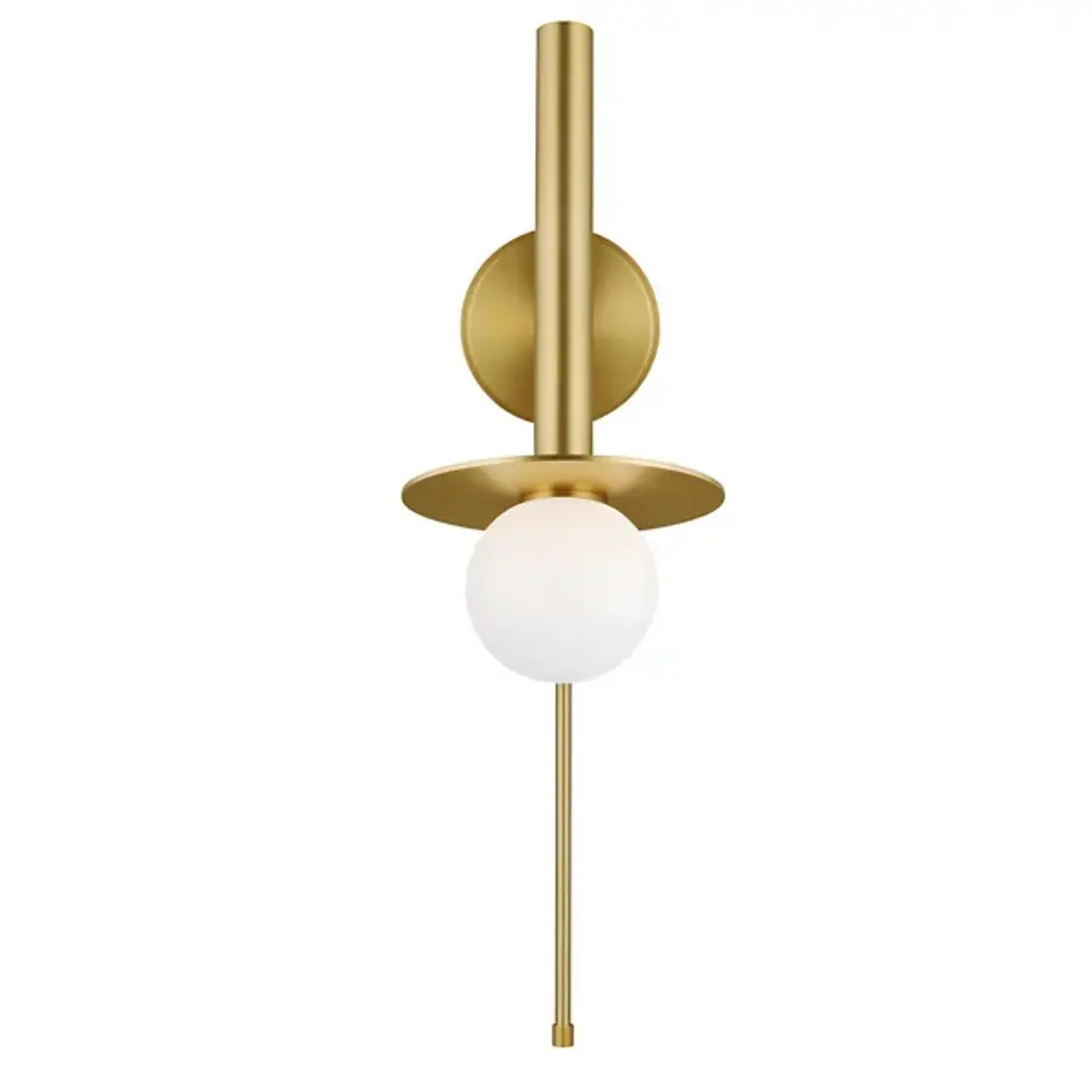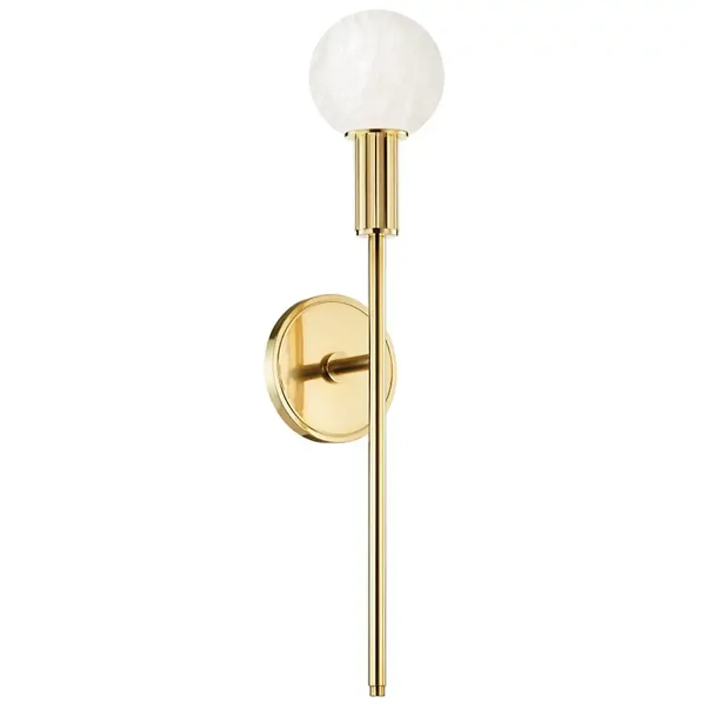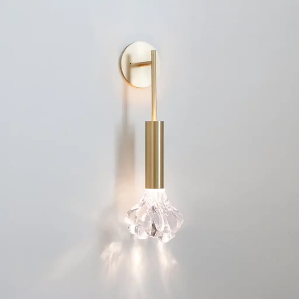 A luminous display of molten handblown glass, the Dew Wall Sconce by SkLO is an expressive piece designed by Paul Pavlak and Karen Gilbert. Driven by the desire to showcase the skill and artistry of sculpted Czech glass, the duo created this piece with the unpredictable nature of liquid glass in mind. A circular wallplate fastens the piece in place while a slender brass tube drops to a layered, dripping glass form containing its light source at its end.