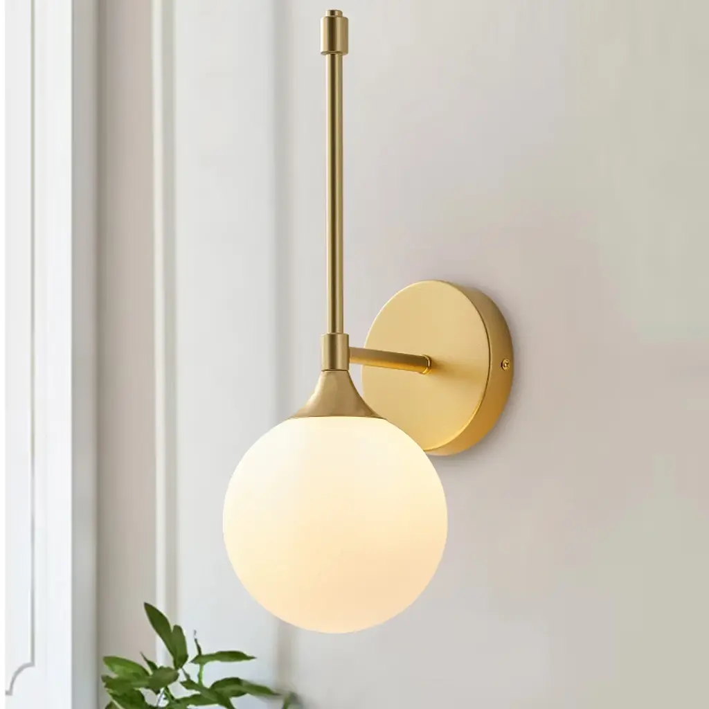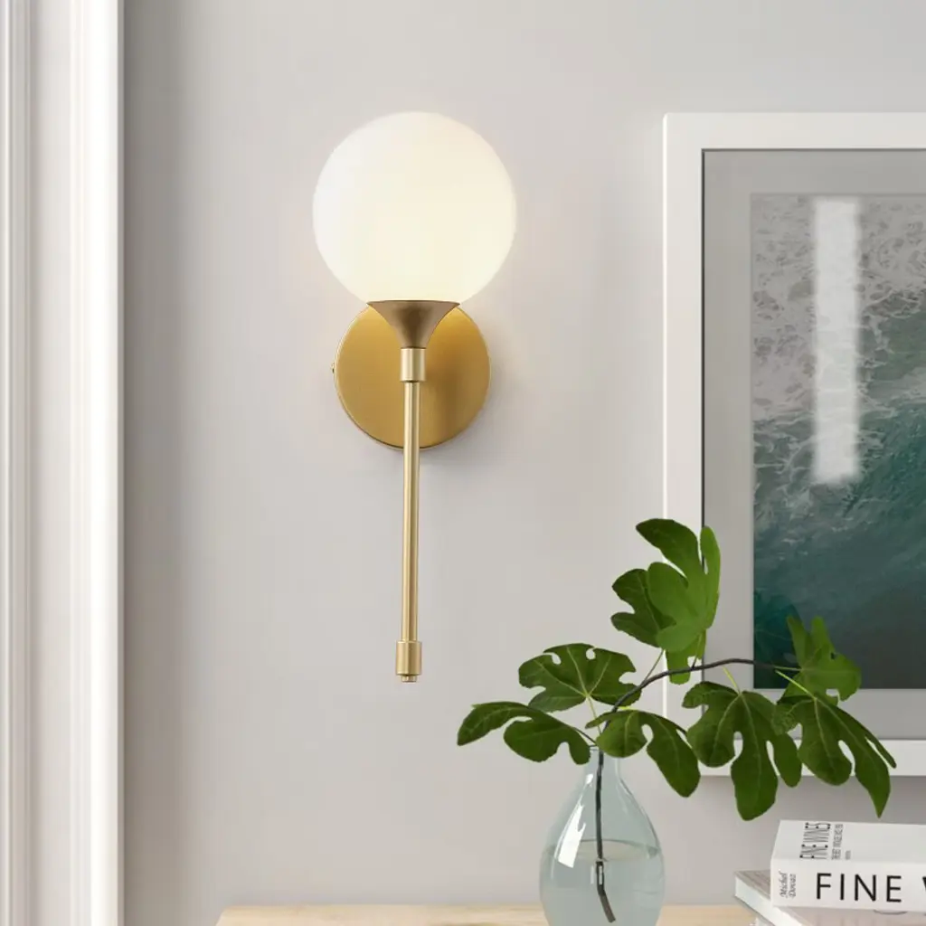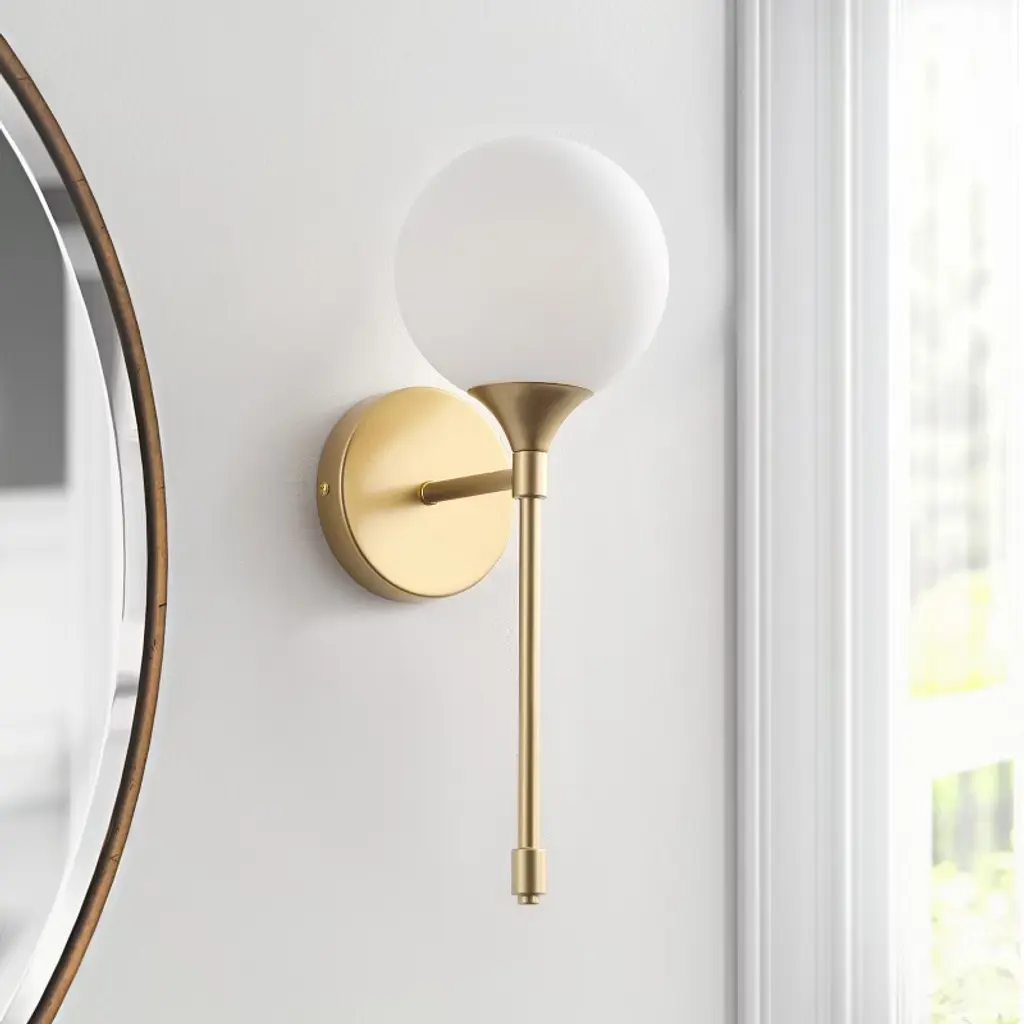 Dewdrop Modern Painted Gold 1-light Wall Light With White Globe Glass Shade