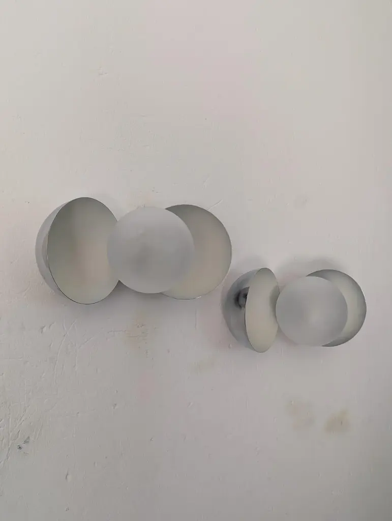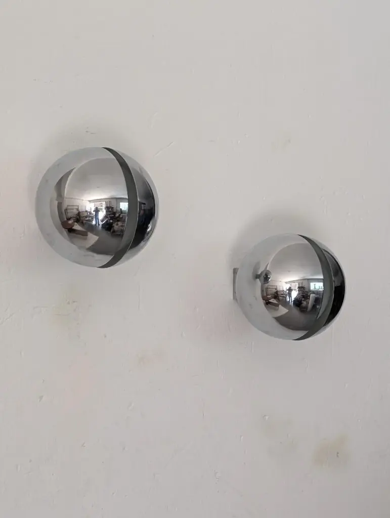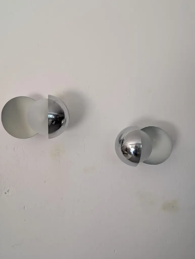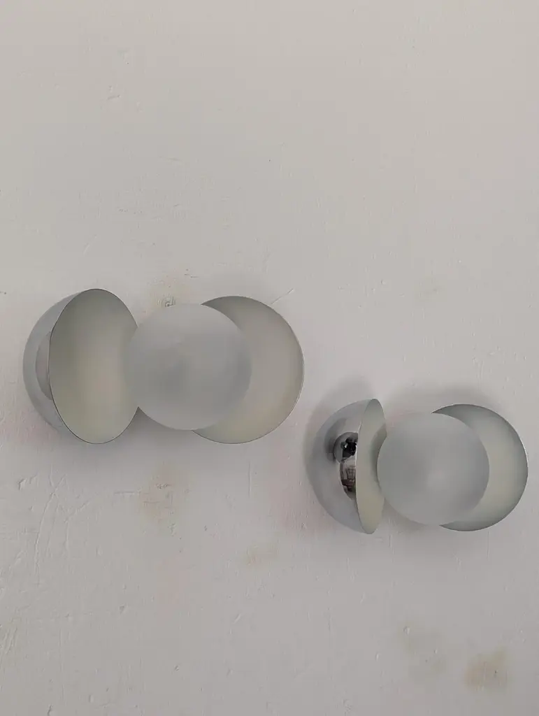 A rare 1960s “diaframma” wall lamp by the visionary collective gianemilio, piero & anna monti (g.p.a. Monti) for fontana arte — where engineering meets artistry. crafted in chromed brass and satin acid etched glass, this mid-century adjustable masterpiece mimic a camera’s diaphragm, casting light with sculptural precision. A hallmark of italian modernism, the diaframma sconce transcends trends, offering collectible brilliance for a discerning aesthete. the diaframma sconce is exceptional because of its: - rarity: few originals survive with such patina and integrity; - origin: it was designed during fontana arte’s golden era when designer max ingrand created many pieces for the renowned italian firm; - versatility: the sconces adjustable panels create dynamic illumination, sublime in both contemporary and vintage contexts. When closed, the sconce is 24 cm wide; when open, it measures 45 cm. the wall lamp is preserved in good condition, but with some signs of the time only, such as the patina on the surface. the milanese trio gianemilio, piero & anna monti (active 1948–1980s) used to fuse architectural discipline with material innovation. their legacy includes: - lighting: the diaframma (1968), lampira (1970s), and tapira series for fontana arte; - furniture: peculiar plastic works for famous firms kartell and de padova. - architecture: villas in piona and forte dei marmi, blending modernist rigor with organic fluidity. their ethos? "design without dogma" — a balance of technical mastery and poetic form. fontana arte: a milanese design dynasty founded in 1932 by luigi fontana and gio ponti, this atelier became synonymous with light-as-art under directors like pietro chiesa (1930s) and max ingrand (1950s–60s). fontana arte’s hallmarks are: - mastery of glass: layered crystal, bent diffusers, and metallic finishes. - timeless creations: from ponti’s bilia table lamp to ingrand’s dahlia chandeliers. - accolades: 1998 compasso d’oro winner, cementing its status as italy’s lighting avant-garde. this piece is attributed to the mentioned designer/maker. It has no attribution mark and no official proof of authenticity, however it is well documented in design history. I take full responsibility for any authenticity issues arising from misattribution, european plug (up to 250v).the wiring of this item may be original and might need replacement, if not specified otherwise.