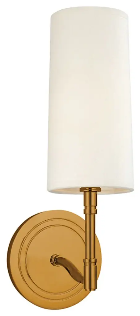 Modeled off the basic idea of the curved-arm chandelier Dillon's arms are gently undulating waves bearing candle sticks. Long cylindrical silky shades add a sense of visual weight to Dillon's slight frame. Restrained stepping unifies the airy transitional fixture. Wall sconce versions create an opportunity to match while making a fine addition to any space on their own. Number of Bulbs: 1Bulb Type: E12 CandelabraWattage: 60Voltage: 120 VACBulb Included: NoUL Listing: UL