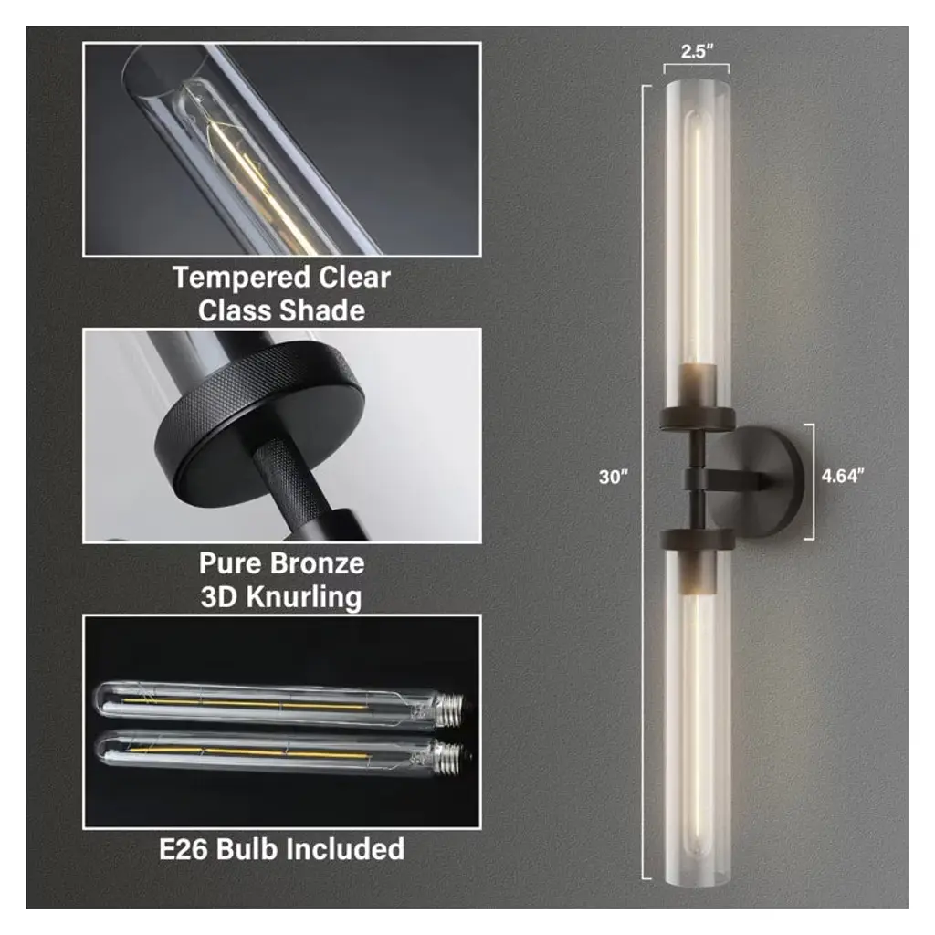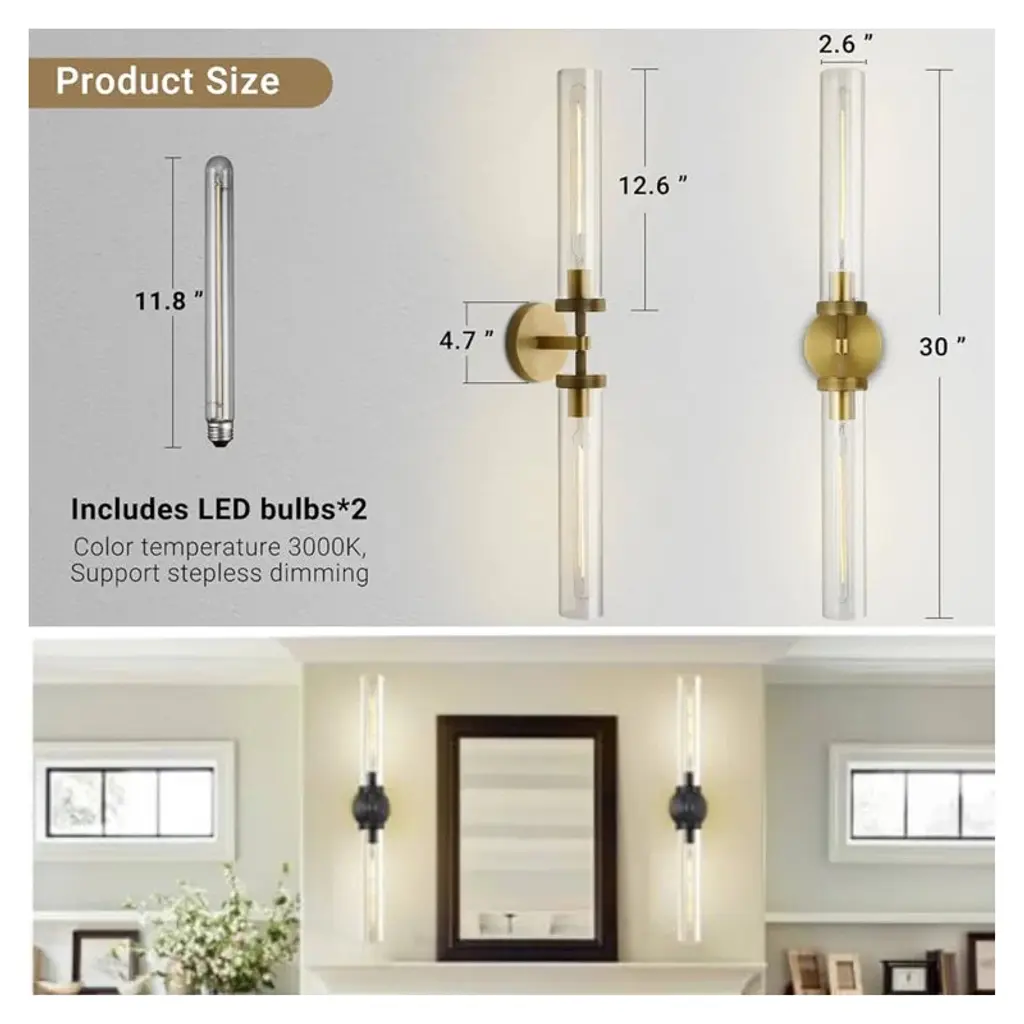 Crafted from durable metal and frosted lampshade, this wall sconce light is built to last. This sconce adds a touch of opulence to your space, with its sleek and elegant black color. The light effortlessly complements various decor styles, from modern to farmhouse, enhancing the overall aesthetics of your room. The sturdy metal frame ensures stability. This wallchiere is made of highly transparent hard glass and a solid brass base for a soft diffusion of light. The vintage textured lamp body, as well as the handmade shade, looks simple and generous, blending perfectly with the surrounding modern decor, yet maintaining its unique industrial feel for you, This sconce will bring more sophistication and luxury to the lighting of your home.The wall lights have been made from high-quality brass which is not only considerably light, and durable but is also aesthetically appealing. It includes 1 E26 bases, suitable for CFL and LED bulbs up to 60W (Bulbs Included). Suited for use in the bathroom, our bath lighting fixture creates unique lighting with each design creating a bath lighting experience that is second to none.