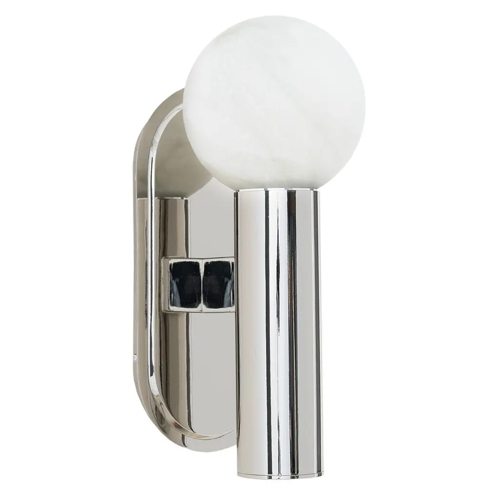 The Dion Sconce is a modern and sleek lighting fixture that effortlessly channels the mid-century modern aesthetic. Its metal base, paired with an alabaster-like glass globe, creates a captivating blend of contemporary design and timeless elegance. Ideal for entryways, hallways, bedrooms, or living spaces, the Dion Sconce is a versatile statement piece that brings a touch of warm illumination to any room.