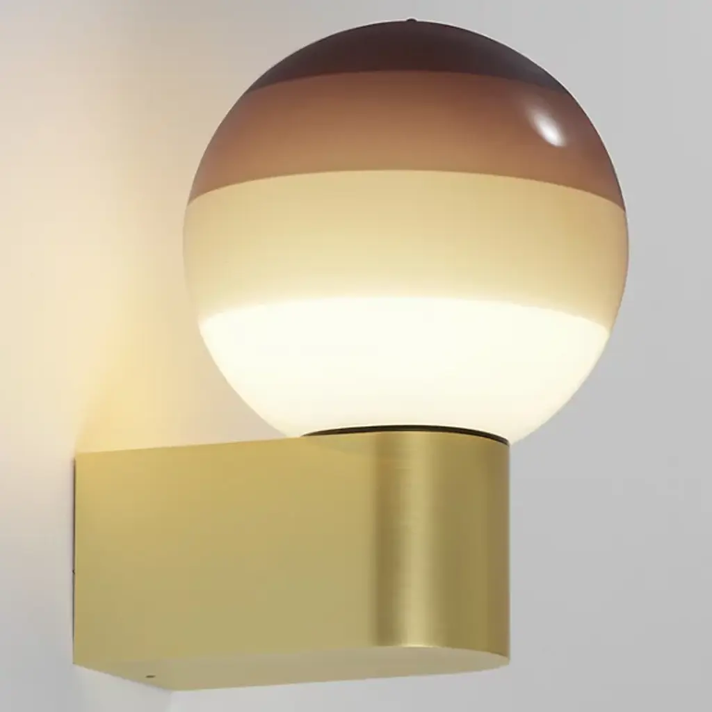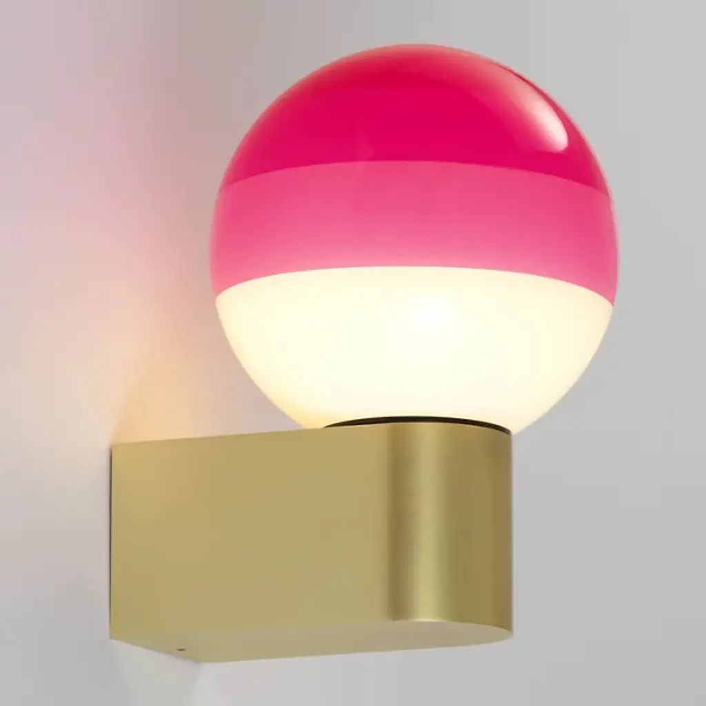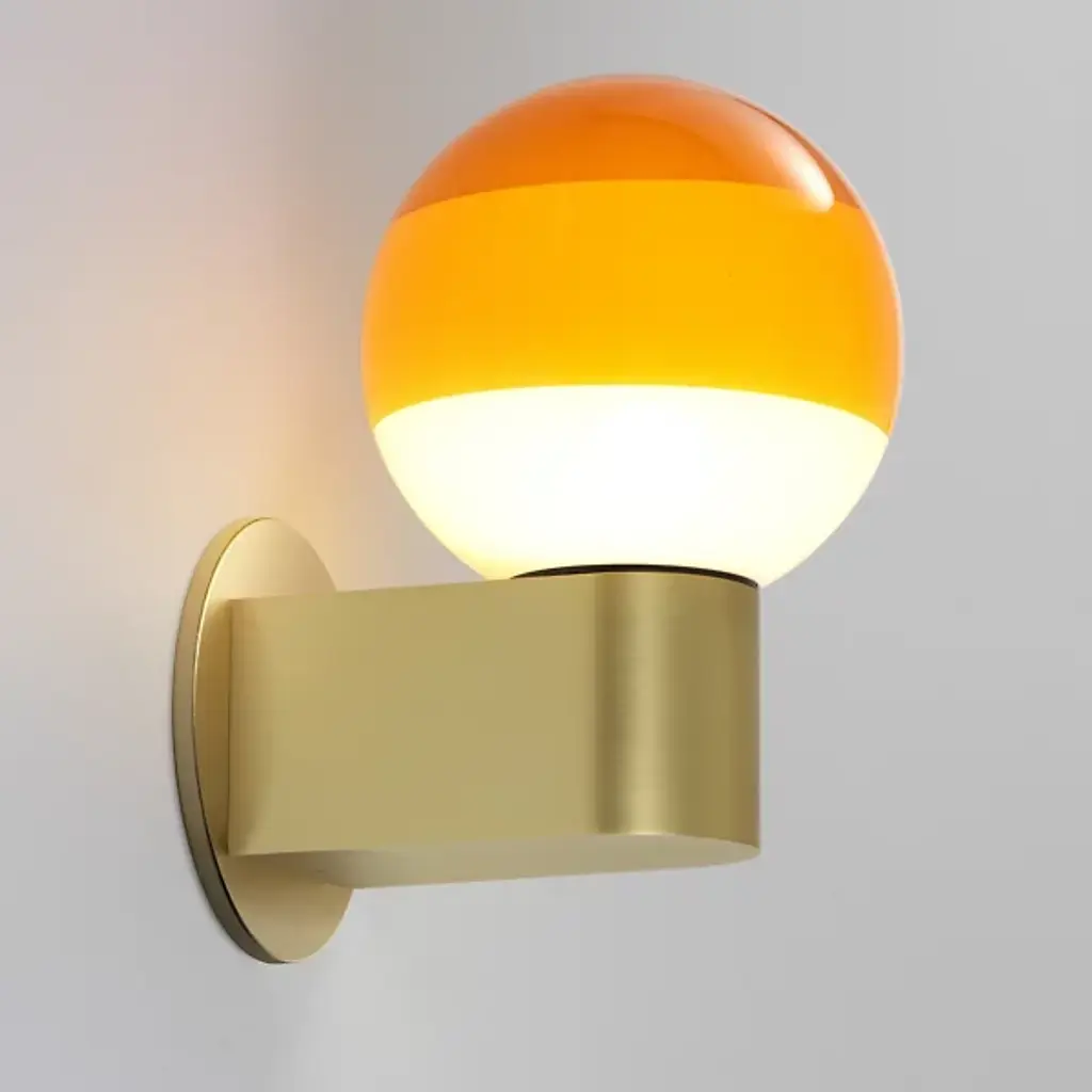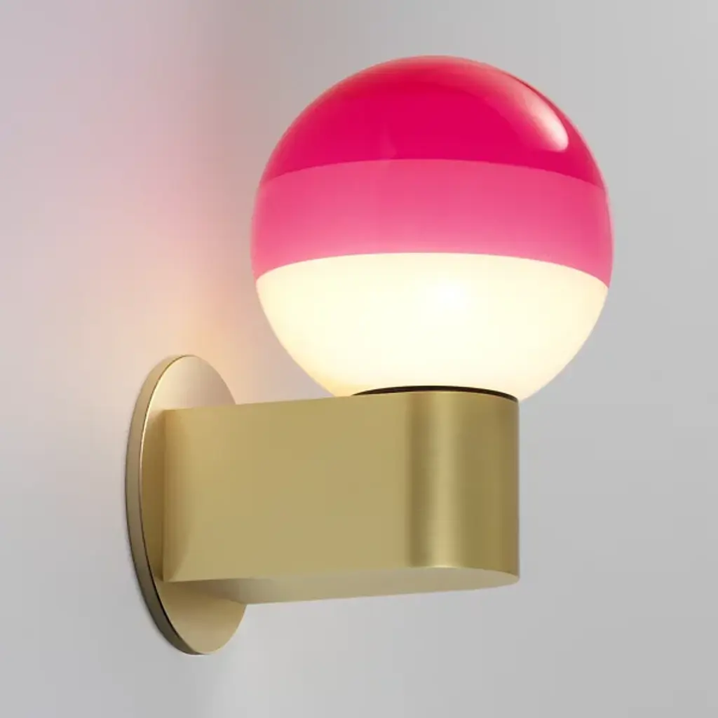 Bring color and light to your home décor with the Dipping Light LED Wall Sconce from Marset. Striking a balance between mesmerizing art piece and functional lamp, this fixture is made of a spherical blown glass shade that is repeatedly dipped into paint to create layers of gradient color. A circular brass wall mount complements the colorful sphere and secures it to the wall. Designer Jordi Canudas received several awards for his Dipping Light series, including the Best of Year award from Interior Design magazine.