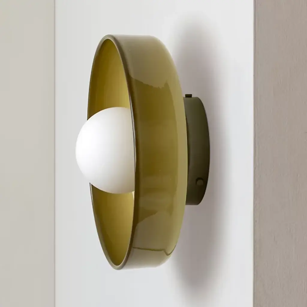 The Disc Surface Outdoor Wall Sconce from In Common With embodies pure simplicity, casting an ethereal ambiance with its clear-cut design. Its sleek metal mounting hardware remains hidden, allowing the focus to rest solely on the hand-blown glass shade. Available in various sizes and finishes, each shade is meticulously hand-blown to order at Brooklyn’s Urban Glass, ensuring both uniqueness and quality. This sconce combines Contemporary style with Artisanal Modern craftsmanship, constructed from durable metal and with lamping wet-listed for outdoor use, delivering an enduring, generous glow across outdoor spaces.
