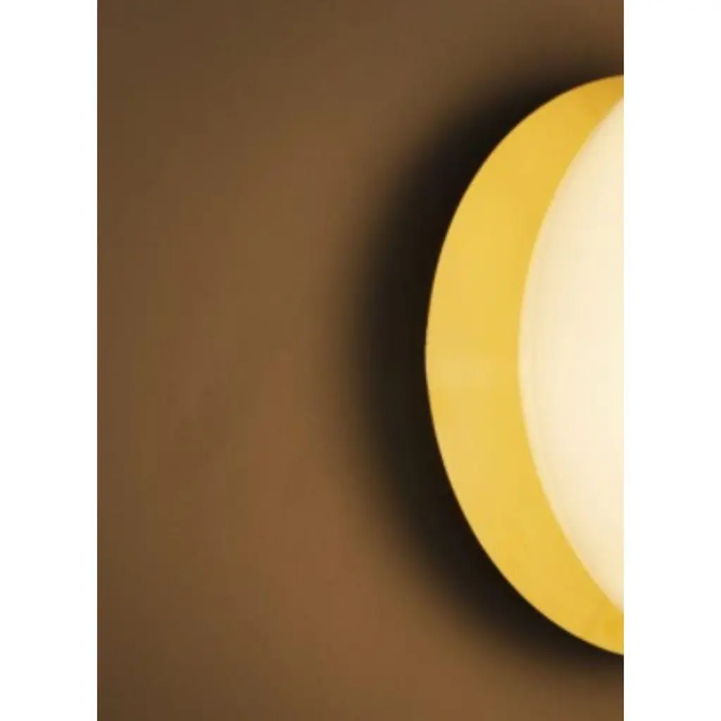 Disco wall light by ContainDimensions: D 20 x H 21.5 cm Materials: Brass structure and opal glass.Available in different finishes. All our lamps can be wired according to each country. If sold to the USA it will be wired for the USA for instance.“You are where you live” So, we decided to live in Mallorca. We are Mauricio Obarrio and Juan Peralta and CONTAIN is our lighting and furniture design studio.This collection is the result of the collaboration between our studio, local artisans and the industrial sector; where creativity and simplicity creates a unique synergy and generates a narrative between the materials used and the pieces created. Our mission is to deliver artisan crafted, highly engineered, sophisticated yet simple lighting design solutions. Our studio's inspiration is fueled by an obsession with natural materials such as Brass, Glass, and Hardwoods along with a love for artisan craftsmanship.