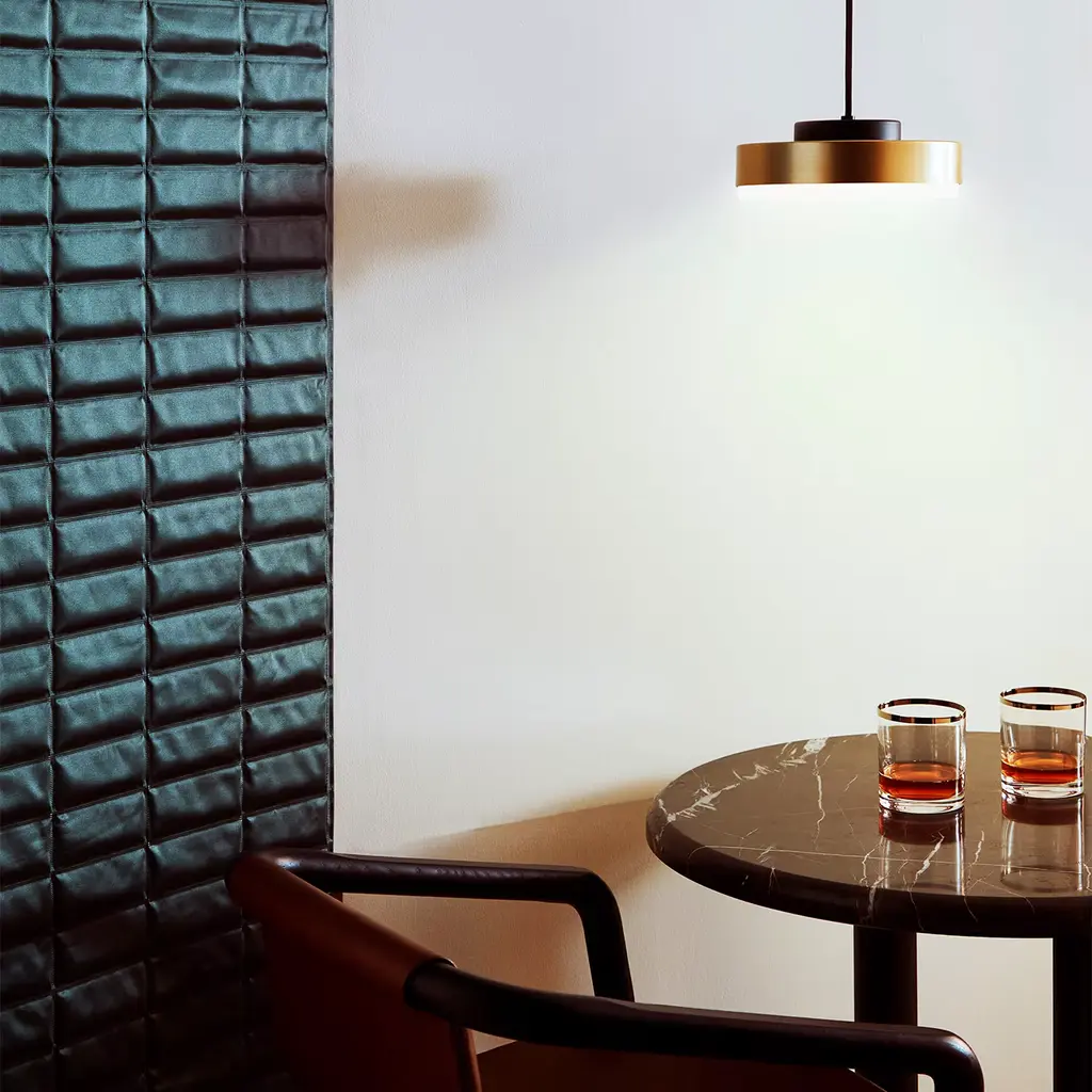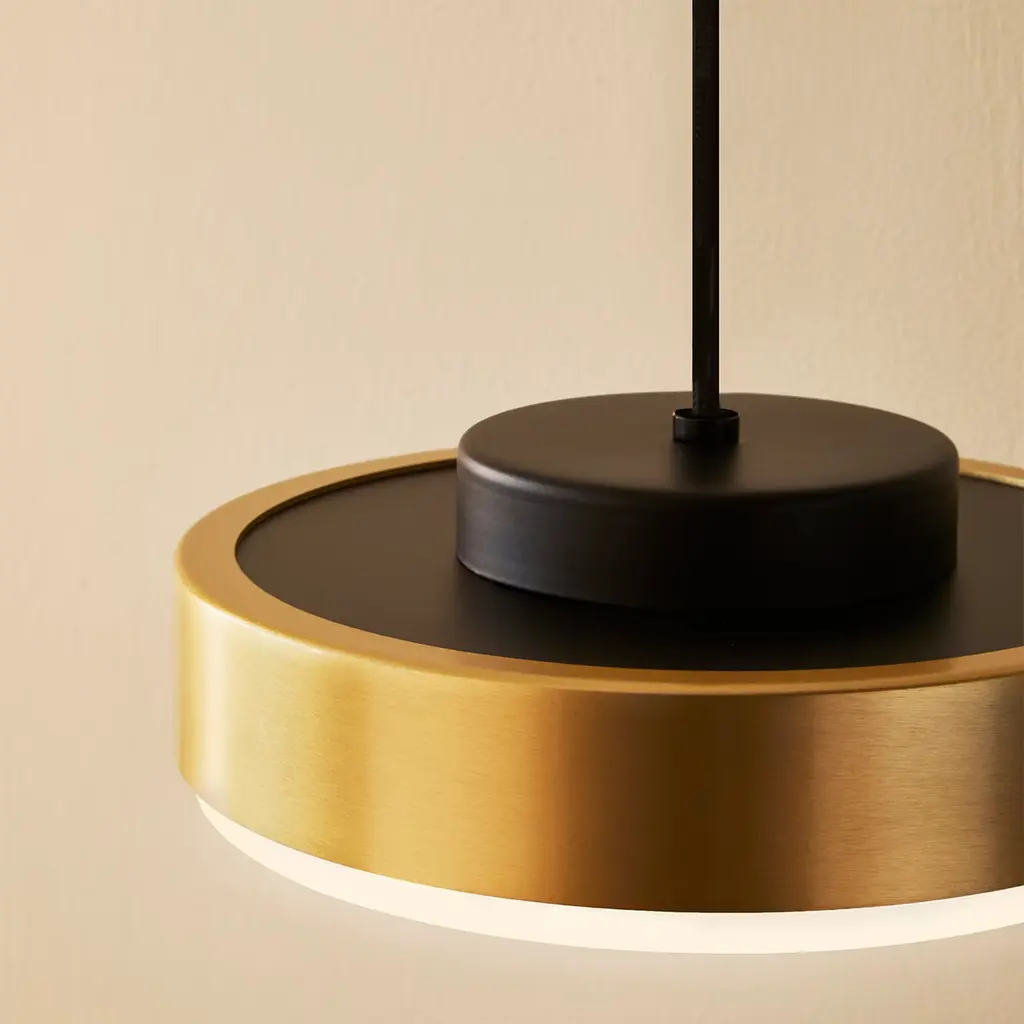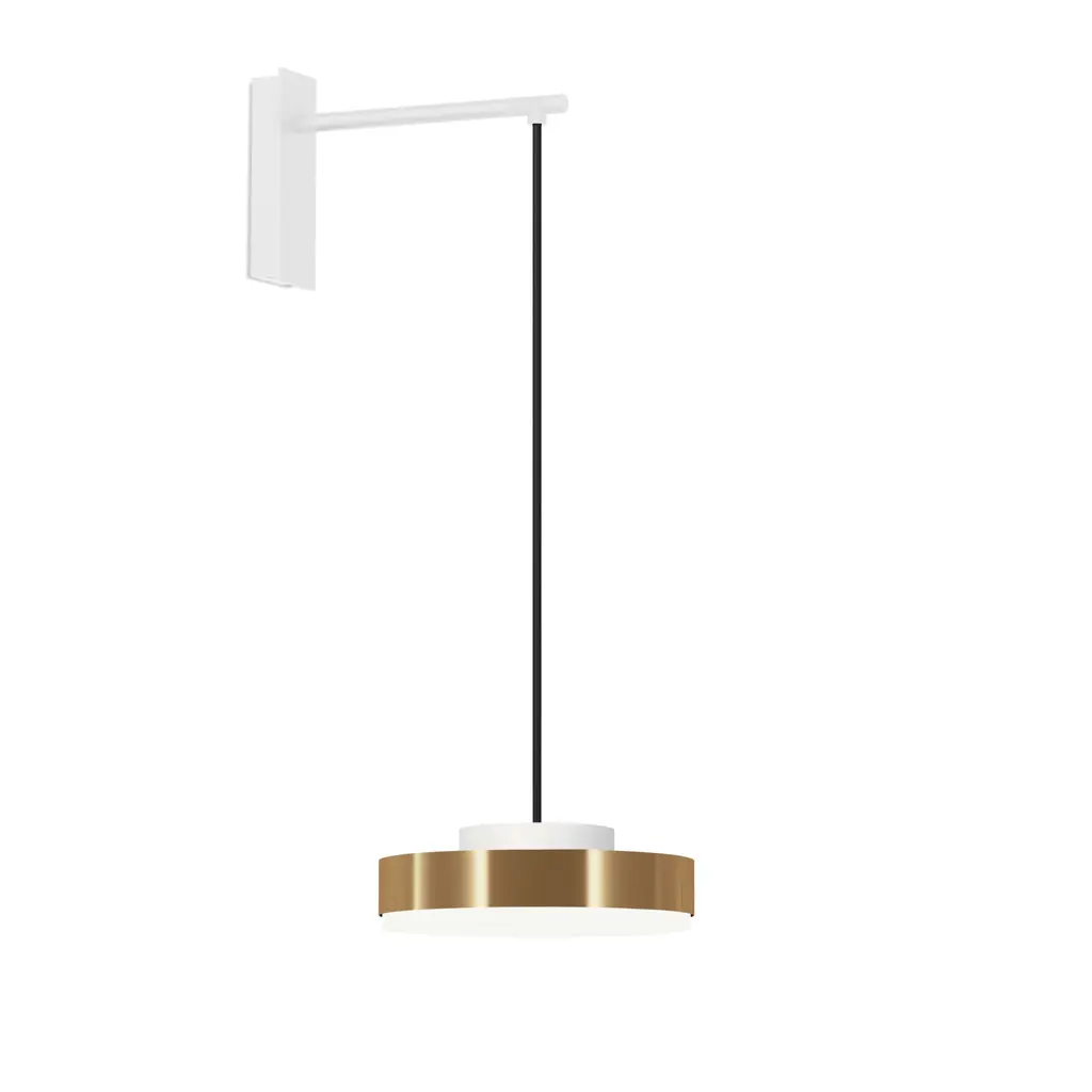 Part of the gorgeous series of minimalist lighting fixtures named for their disk-shaped shade, this exquisite small wall lamp will elevate the look of contemporary interiors in both private and commercial contexts. Fashioned of matte-black lacquered metal in a refined silk effect, its linear structure is adorned with a semi-polished brass-finished metal ring on the shade for a dash of metallic brightness.