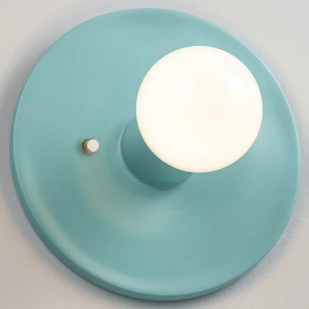 The perfect way to punctuate a modern lighting scheme. The Discus Wall Sconce by Justice Design Group has a simple, graphic form that can either stand out or blend in discreetly with its surroundings, depending on the chosen color. This wall sconce is handcrafted out of 100% Ceramic, with a disc-shaped base and central extension holding a single lightbulb forth to shine brightly all around a living room, a bathroom or along a hallway.