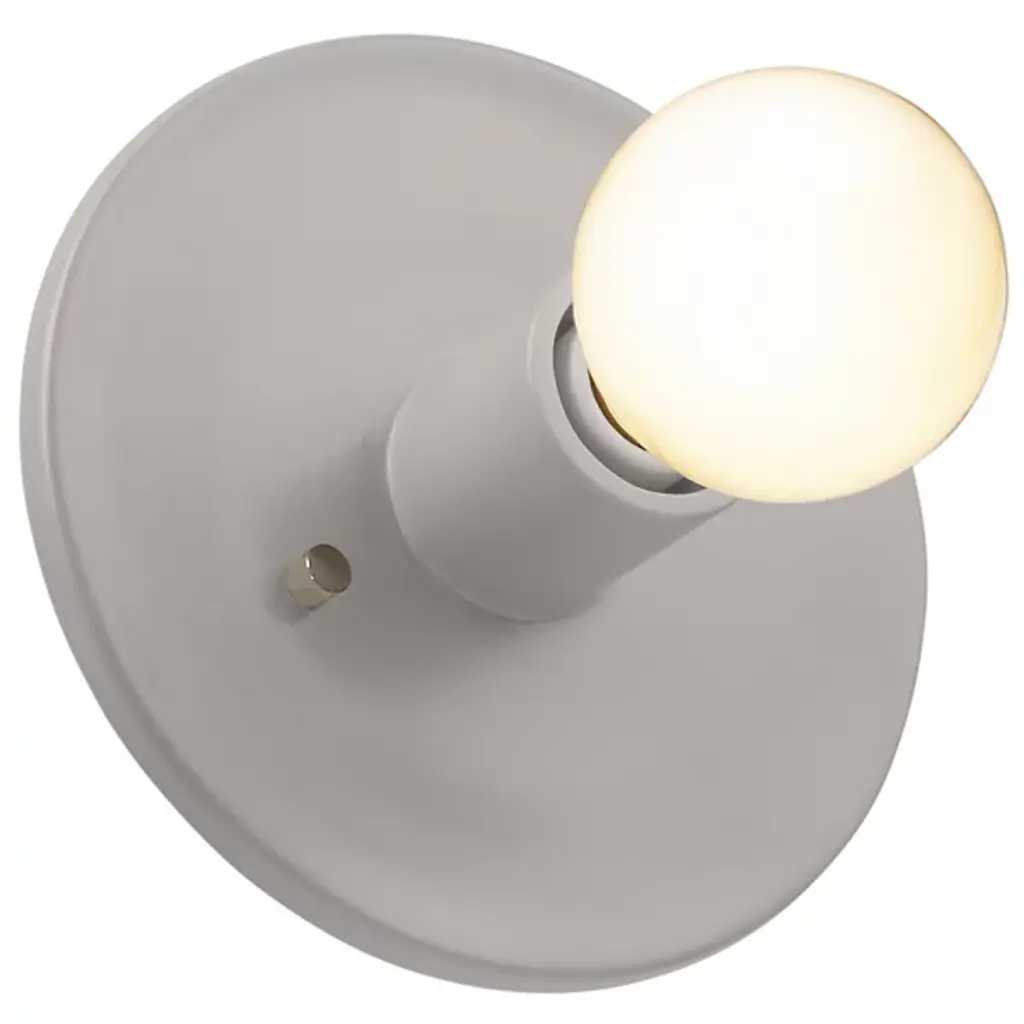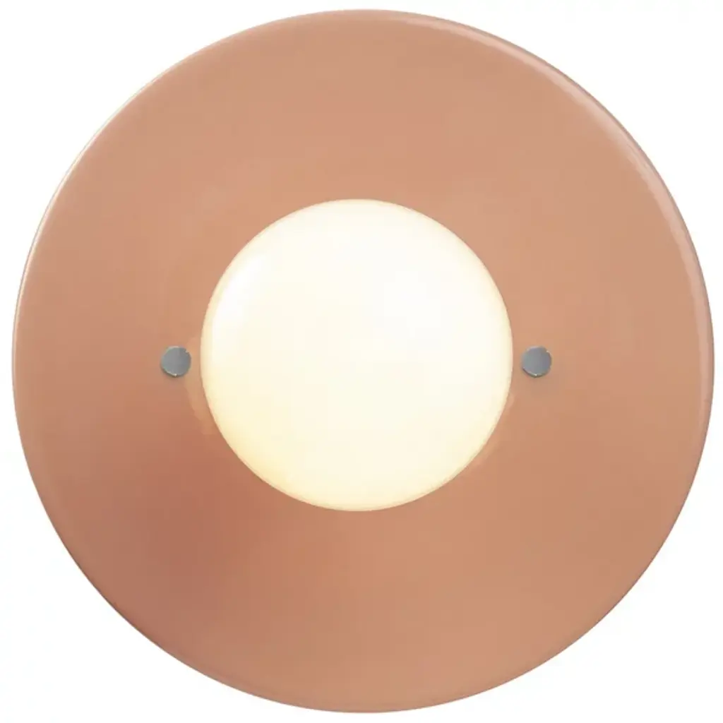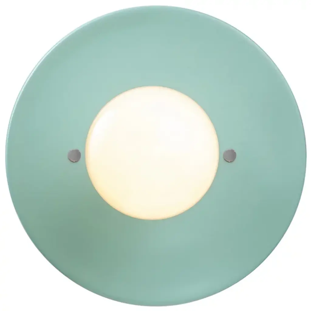 The perfect way to punctuate a modern lighting scheme. The Discus Wall Sconce by Justice Design Group has a simple, graphic form that can either stand out or blend in discreetly with its surroundings, depending on the chosen color. This wall sconce is handcrafted out of 100% Ceramic, with a disc-shaped base and central extension holding a single lightbulb forth to shine brightly all around a living room, a bathroom or along a hallway.