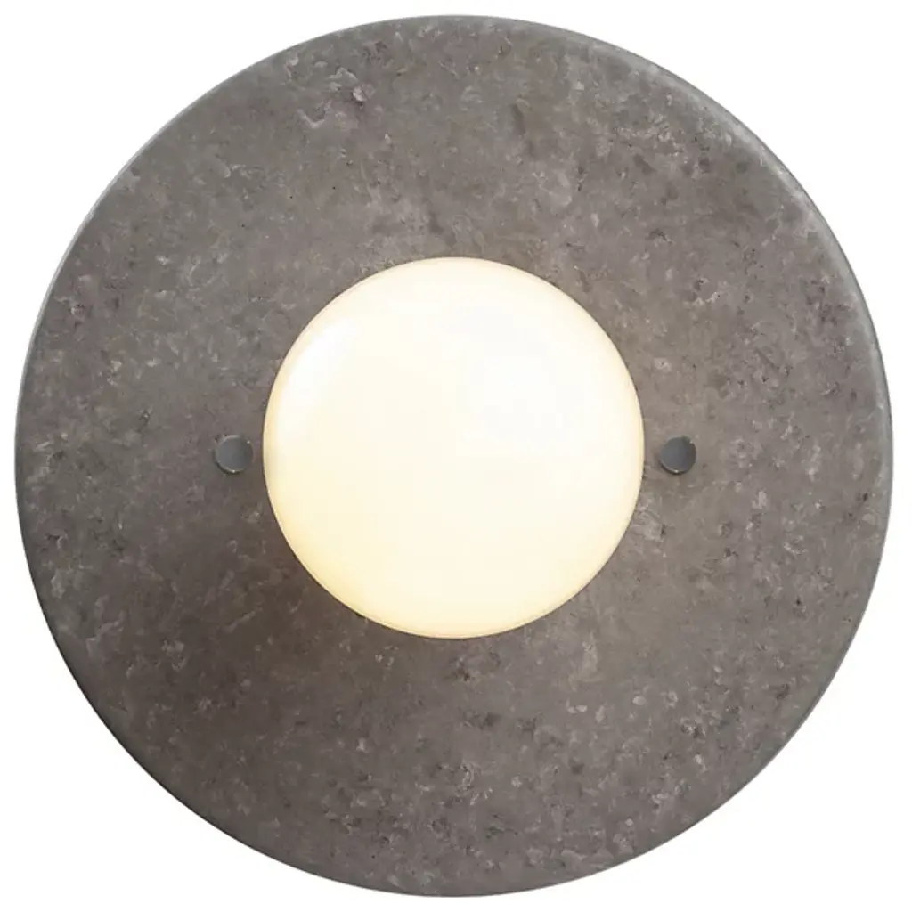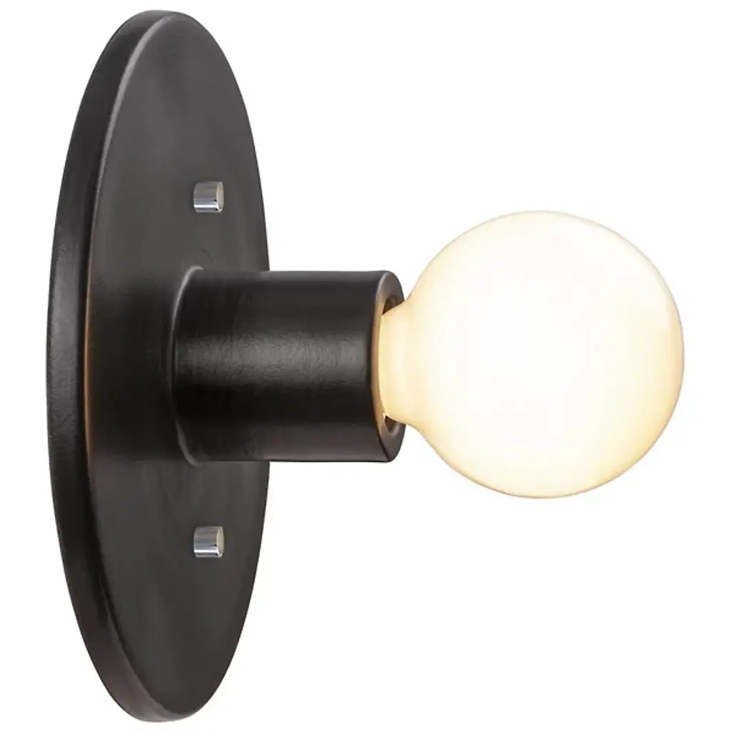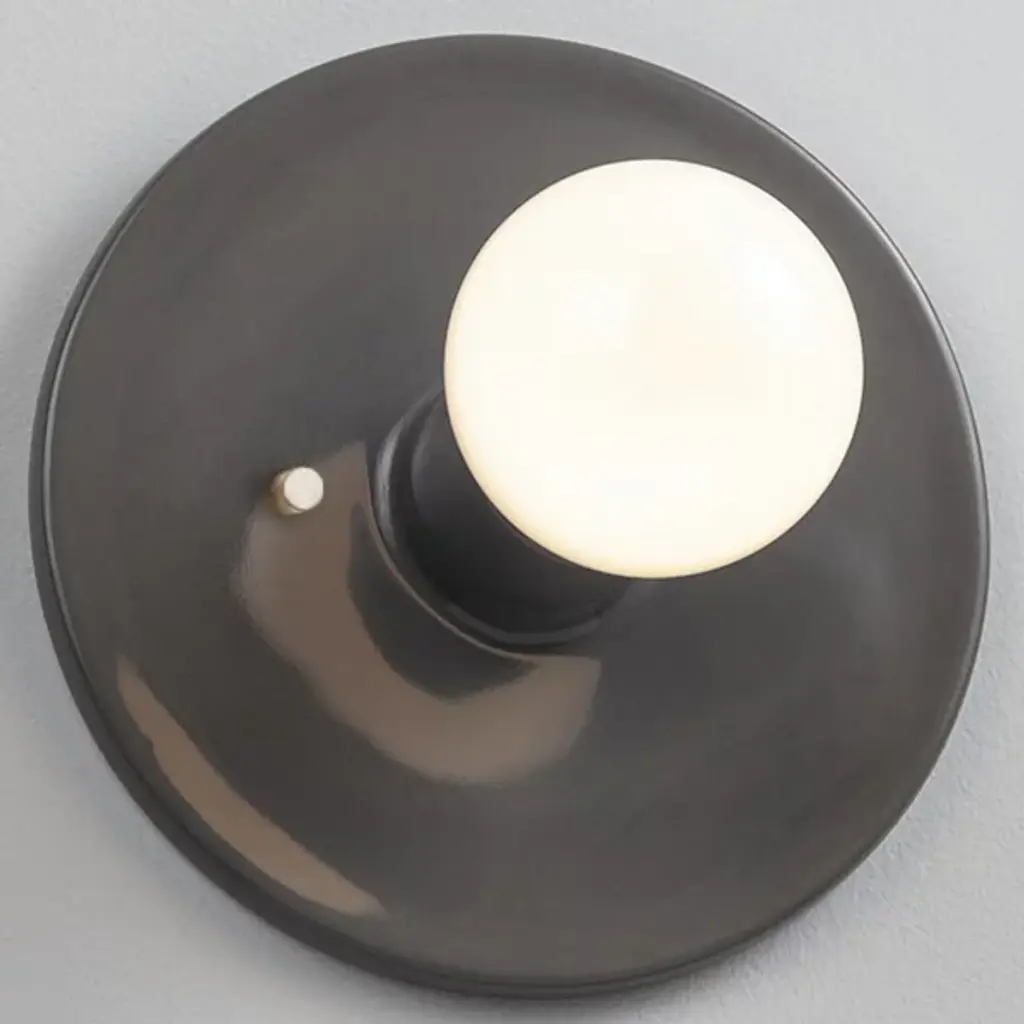 The perfect way to punctuate a modern lighting scheme. The Discus Wall Sconce by Justice Design Group has a simple, graphic form that can either stand out or blend in discreetly with its surroundings, depending on the chosen color. This wall sconce is handcrafted out of 100% Ceramic, with a disc-shaped base and central extension holding a single lightbulb forth to shine brightly all around a living room, a bathroom or along a hallway.