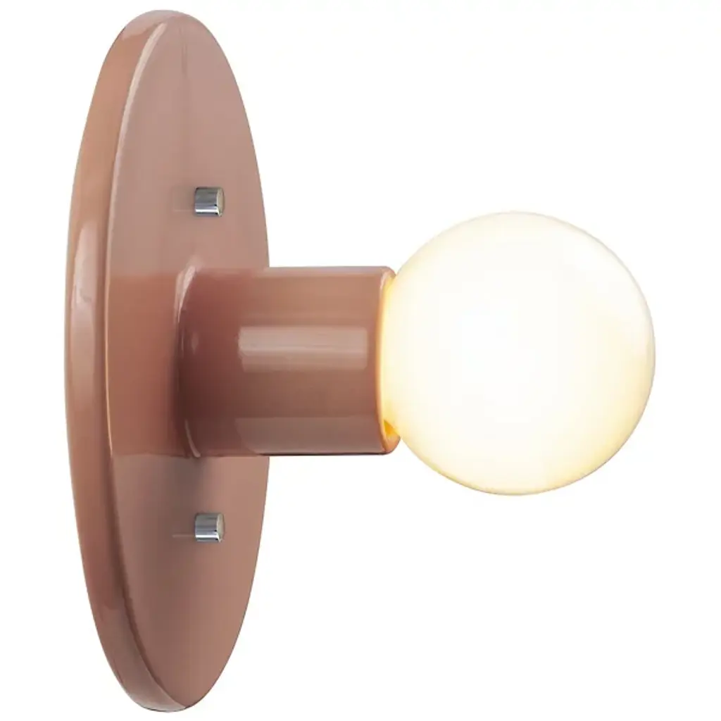 The perfect way to punctuate a modern lighting scheme. The Discus Wall Sconce by Justice Design Group has a simple, graphic form that can either stand out or blend in discreetly with its surroundings, depending on the chosen color. This wall sconce is handcrafted out of 100% Ceramic, with a disc-shaped base and central extension holding a single lightbulb forth to shine brightly all around a living room, a bathroom or along a hallway.
