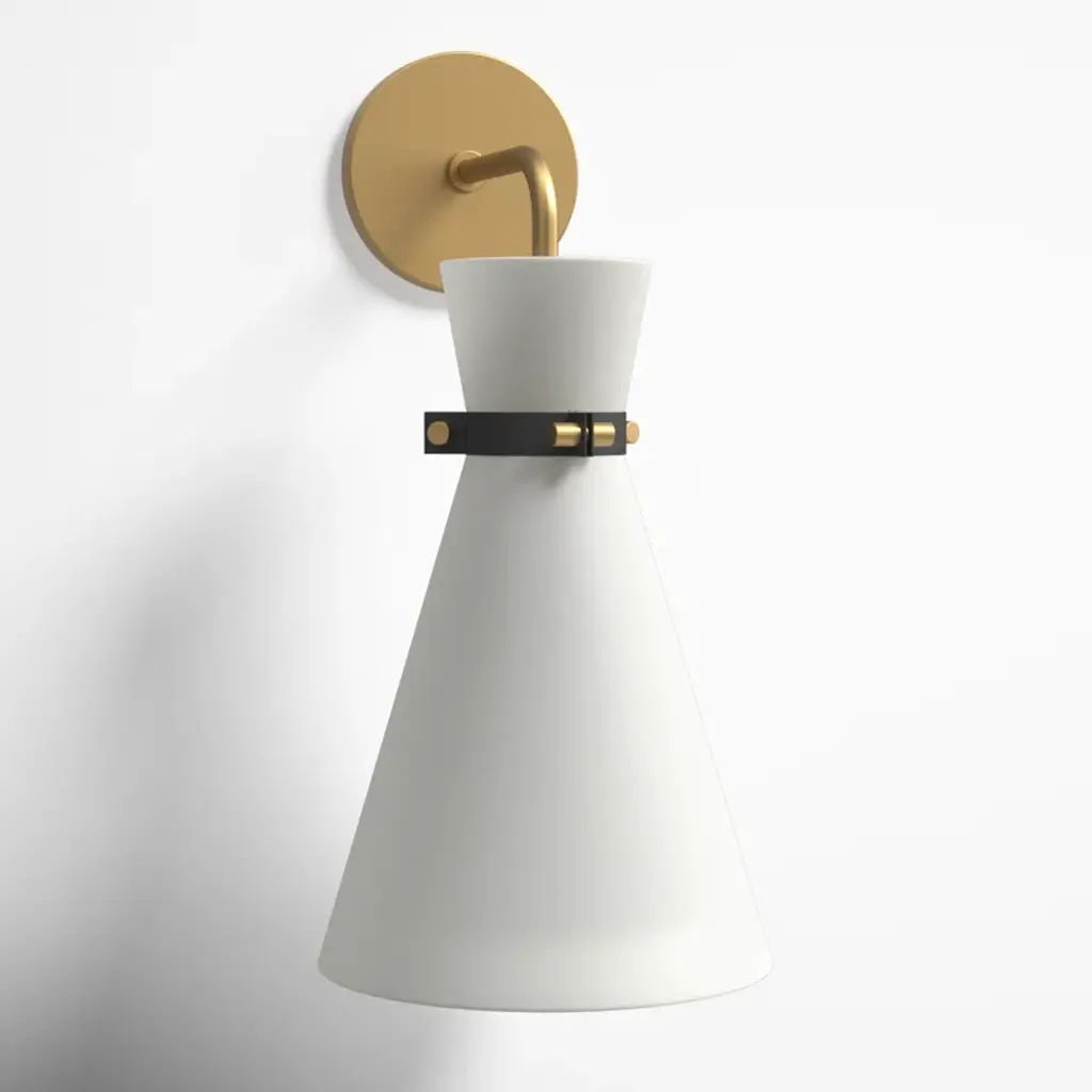 A sophisticated design of vintage allure, this wall lamp by Michele Bönan will elevate the look of a restrained modern wall thanks to a singular, refined character. Fashioned of bronze-finished brass, the structure supports a captivating shade comprised of two cones made of lacquered metal, enhanced with a series of small holes that will diffuse the warm light emitted from the E27 bulb (max 60W).
