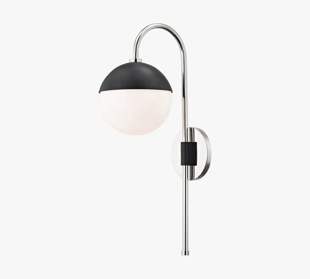 Dixie is defined by its spherical shape and high-contrast, modern aesthetic. Finished with polished metal, it has a retro feel that brings a bit of fun to any room it brightens, adding a good-humored wink that prevents decor from being too serious.
