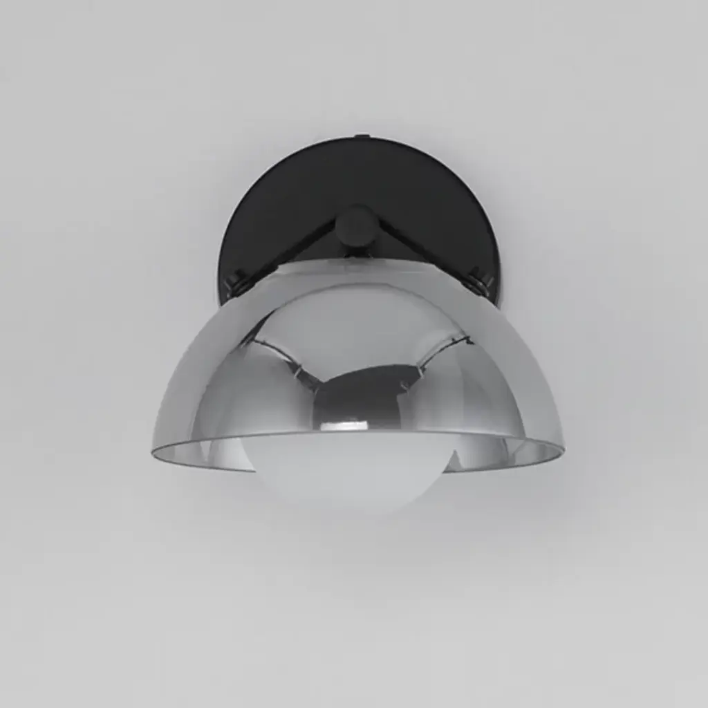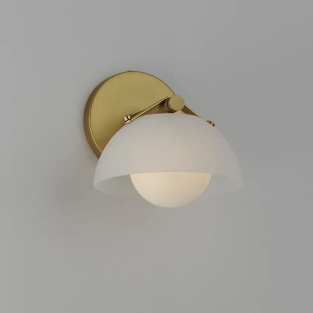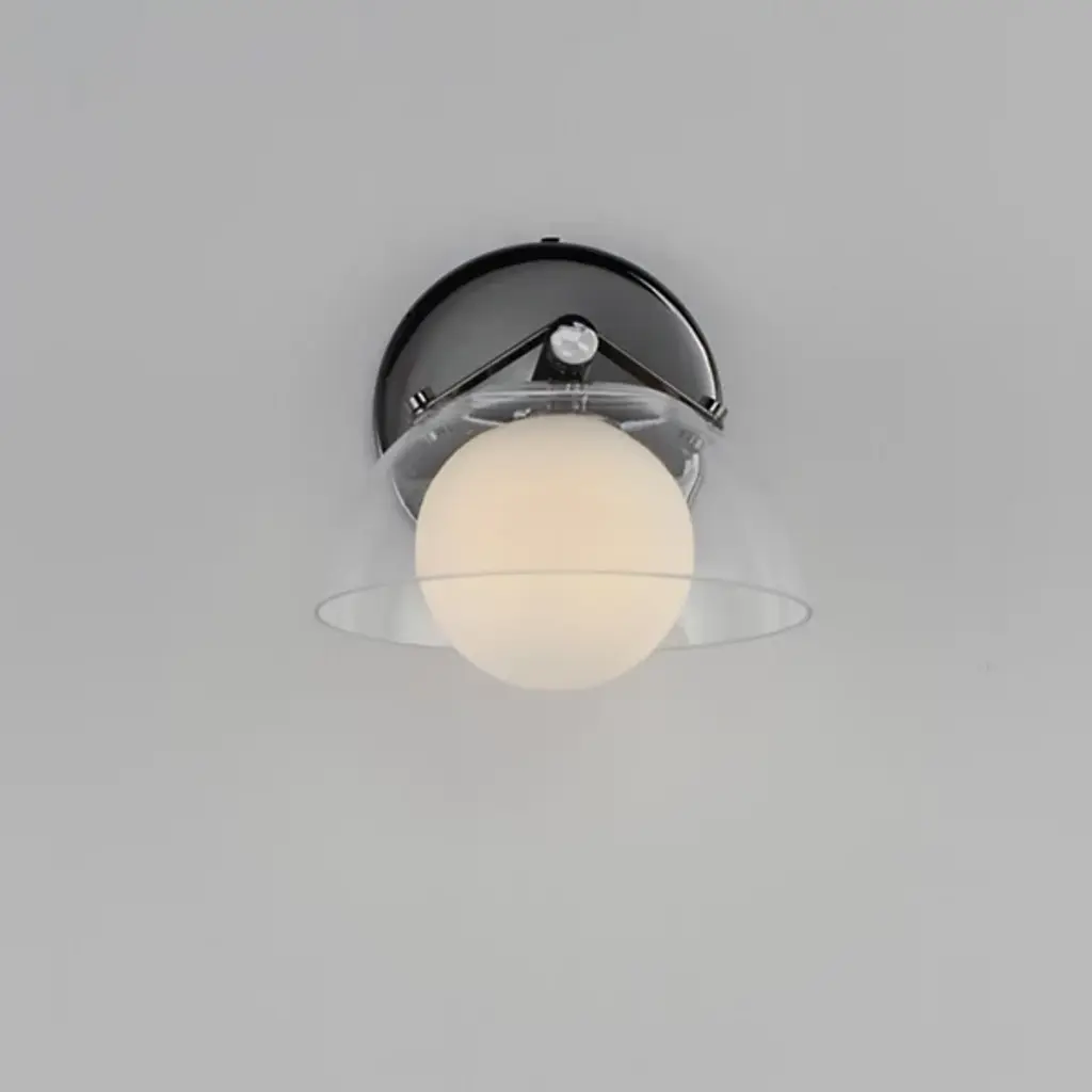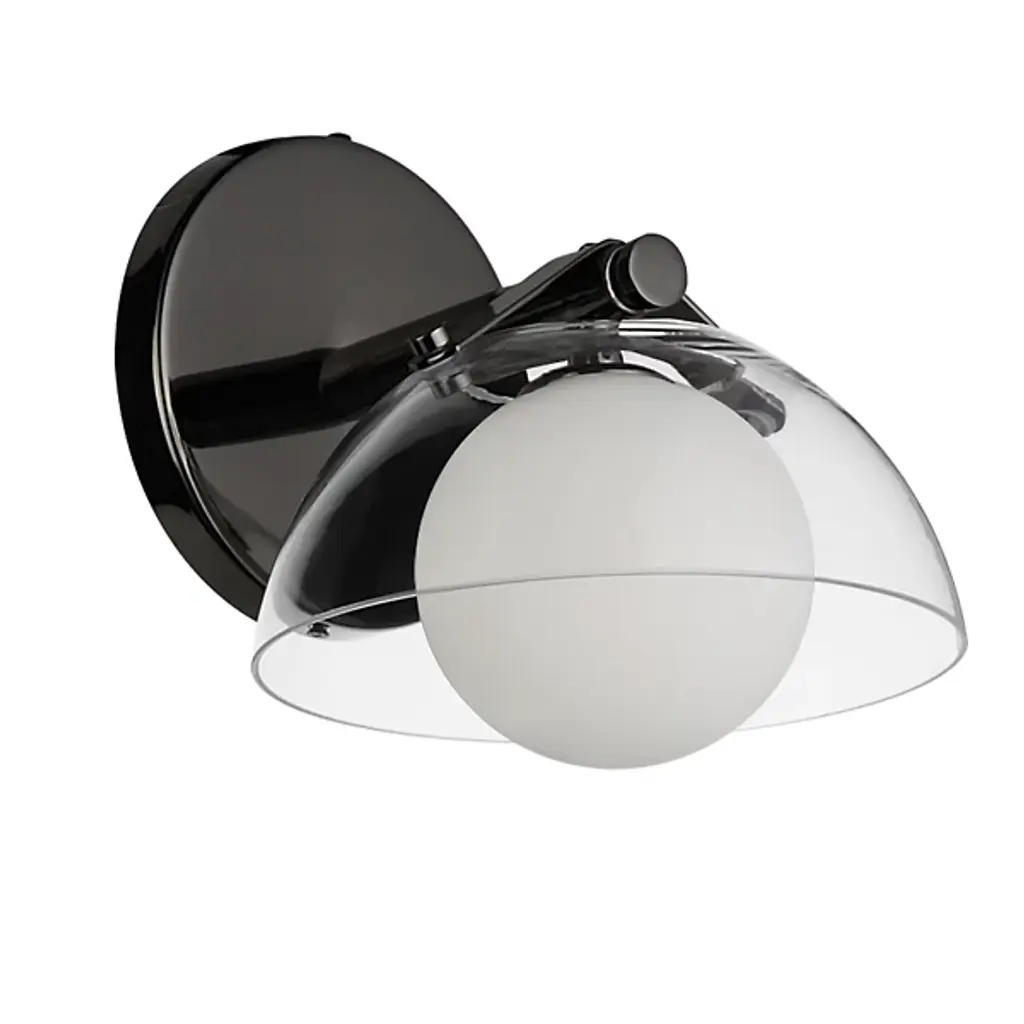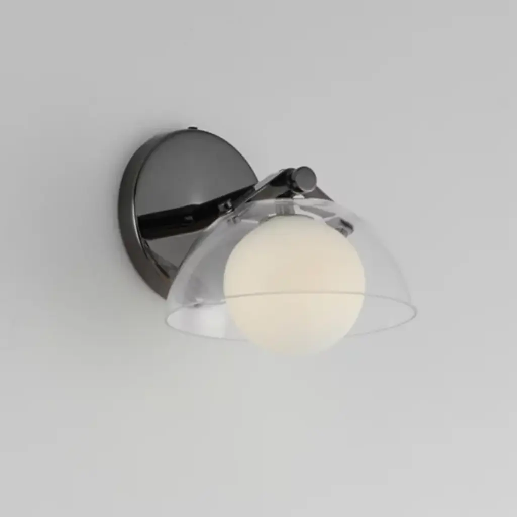 Exuding casual sophistication, the Domain Wall Sconce by Studio M offers versatility in both applications and finishes. With a design showcasing a truncated sphere, it allows Opal White glass shades to emit ample LED lighting through its open top and bottom. The outer glass adds to its aesthetic appeal by complementing the metal finish. Crafted by Mat Sanders, this fixture effortlessly combines style with functionality, perfect for enhancing various interior spaces.