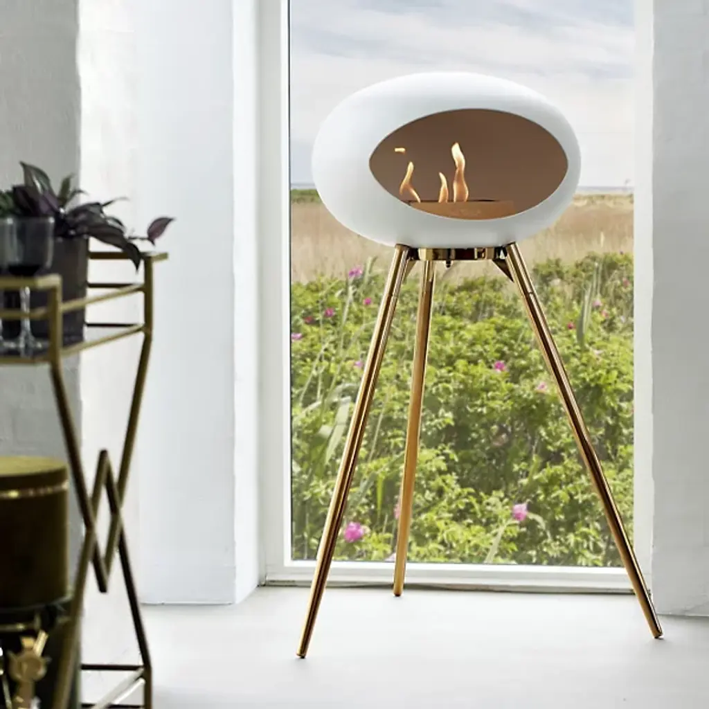 Lend warmth and life to inside spaces with the tasteful, focused lines of the Dome Indoor Ground High Fireplace from Le Feu. A tripod base of telescoping legs converges at a central point, steadying a rectangular biofuel burner ensconced within an ovoid shell with an ultra-modern character. The heat and light are transmitted through an elliptical opening, focusing a stately blend of heat and light outwards while keeping the vibrant flames as the center of attention.