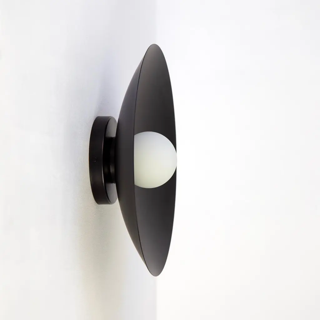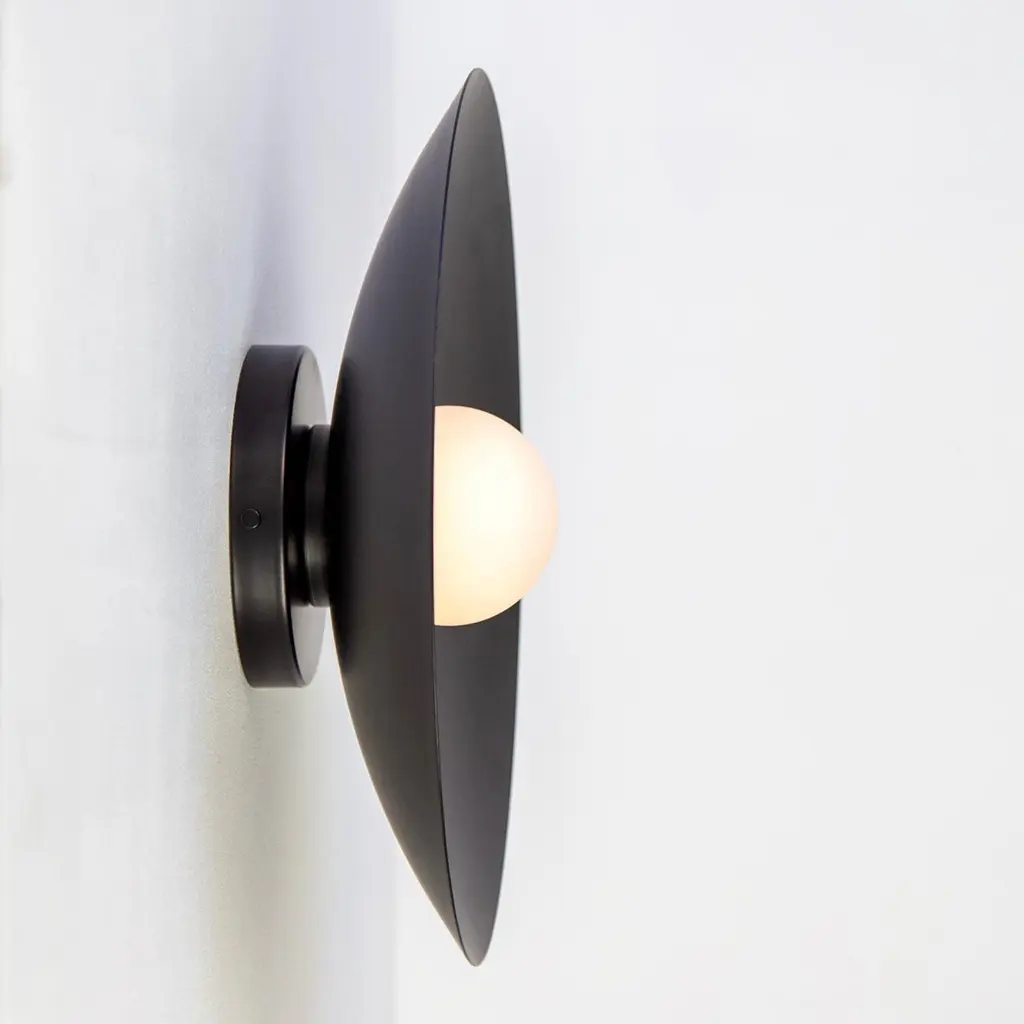 This listing is for 1x Dome Sconce in Black designed and manufactured by Research.Lighting.Materials: Steel, Brass & GlassFinish: Powder Coated Steel in blackElectronics: 1x G9 Socket, 4.5 Watt LED Bulb (included), 450 LumensUL Listed. Made in the USA